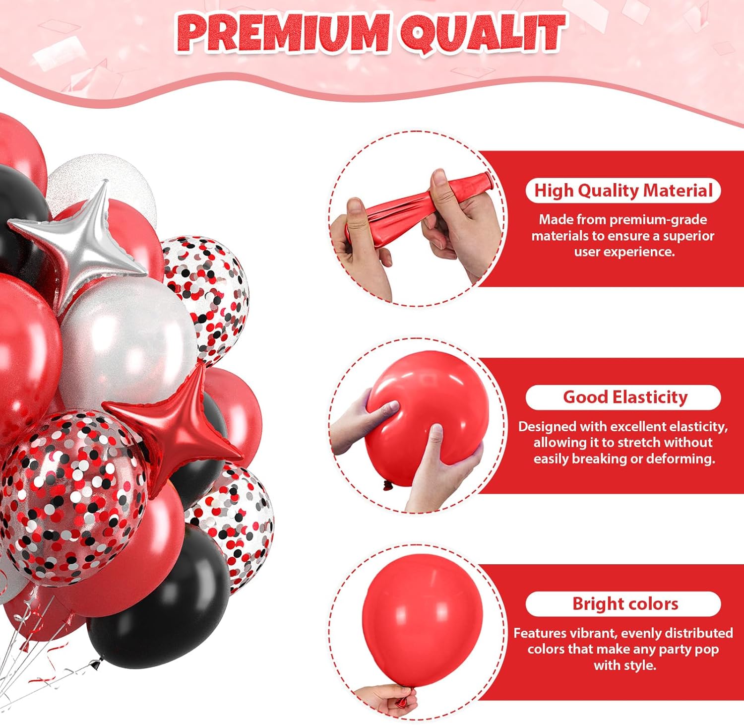 - Premium Look and Feel: Made from high-quality latex, these red black and white balloons inflate with a smooth, glossy surface and maintain their shape longer when properly inflated. Whether you're filling a room or building a balloon arch, their consistent performance makes party setup easier and more enjoyable. Keep the festive mood bright during your event.