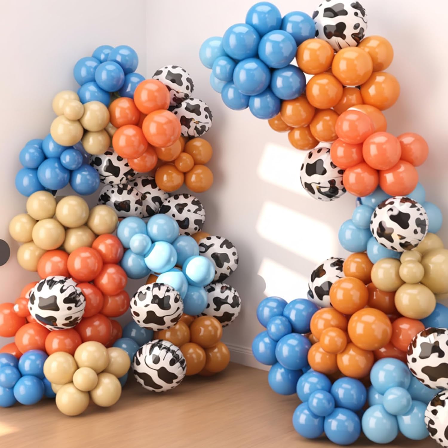 - All-in-One Set: This cow print balloons kit includes 50pcs 12inch latex balloons(retro sea blue, dusty blue, retro sand white, retro lemon yellow, retro orange), 5pcs blue cloud print balloons, 5pcs cow print balloons, and 1pc silver ribbon. Whether it’s a birthday bash, wedding, or bridal shower, the thoughtful color combo, suitable for adding a fun, modern touch to any celebration.