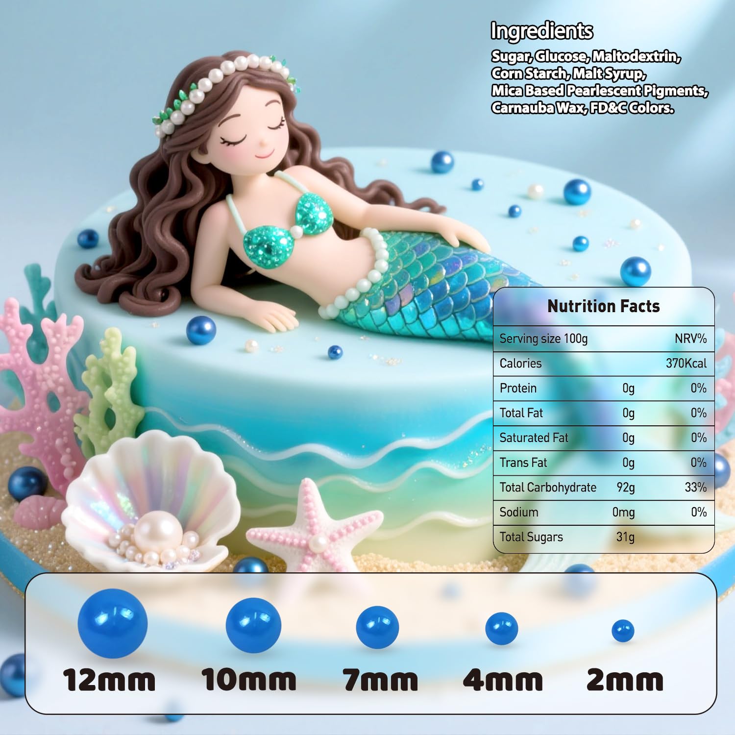 - Safe & Certified Pearls: Food-grade blue pearls sugar sprinkles made with non-GMO ingredients, 0% preservatives. Kosher/Halal-certified in facilities with no allergens (soy/nut/dairy). Tamper-proof sealed for safety.