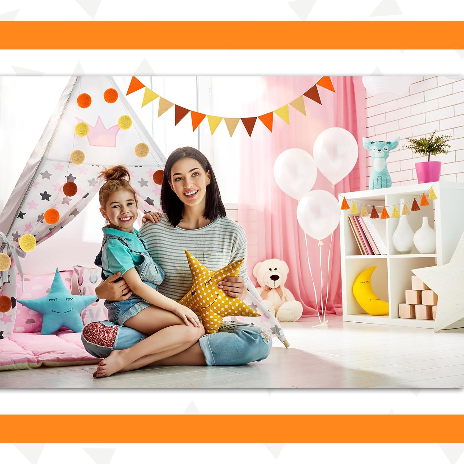 - Nice Decoration Set: the pom pom garland looks elegant and cute when hung on the wall or as backdrop decorations, easy to hang on the ceilings, walls as party or home decoration; Each garland consists of 10 pieces of tassels and each tassel contains multiple colors, full of warm and sweet feelings; The pennant banner cutting is neat, will not easily fall off or break, durable and reusable
