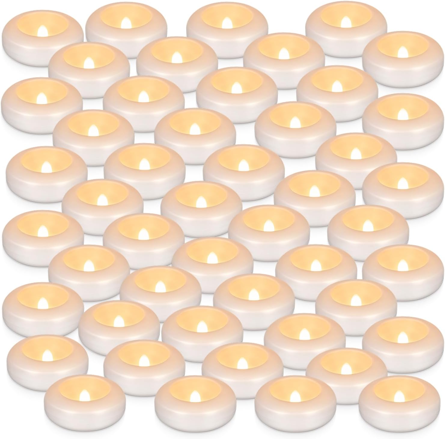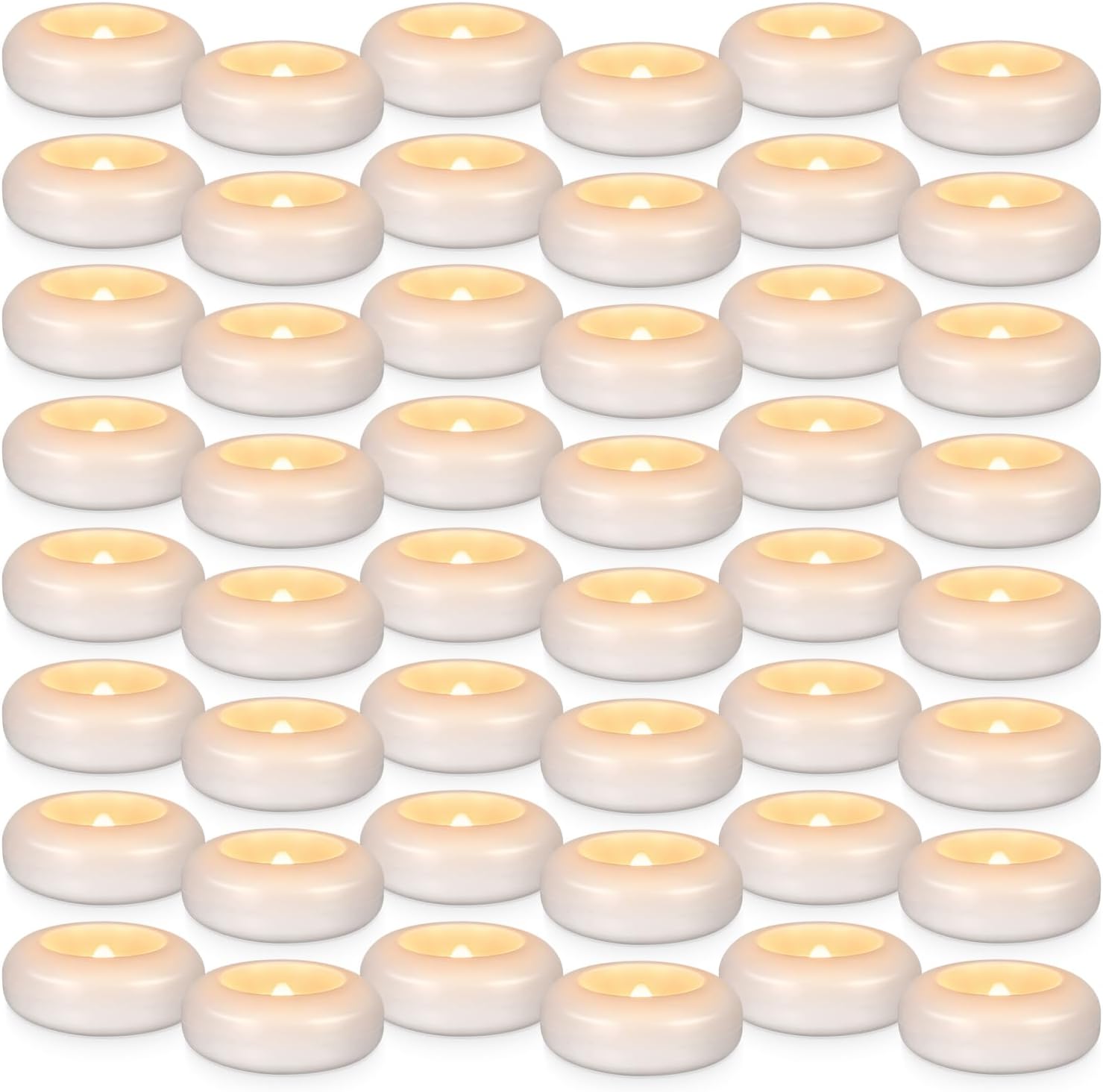 Set of 48 Waterproof Flameless Floating Tealights, 120+ Hour Warm White Battery Flickering LED Tea Lights Candles - Wedding, Party, Centerpiece, Pool & SPA.