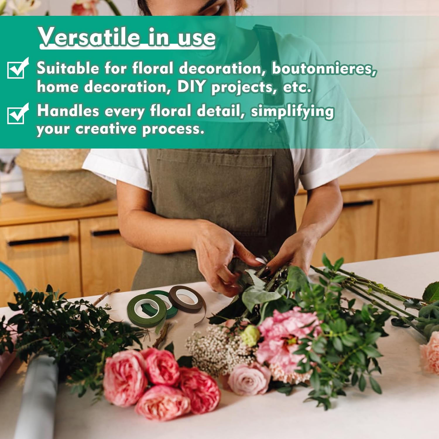 - Waterproof and Does Not Fade: Our green floral tapes still remain sturdy and long-lasting around the flower stems even if they are wrapped around the flower stems in the water. The tape is waterproof, providing maximum viscosity for a wet surface, and will not fade even when immersed in water