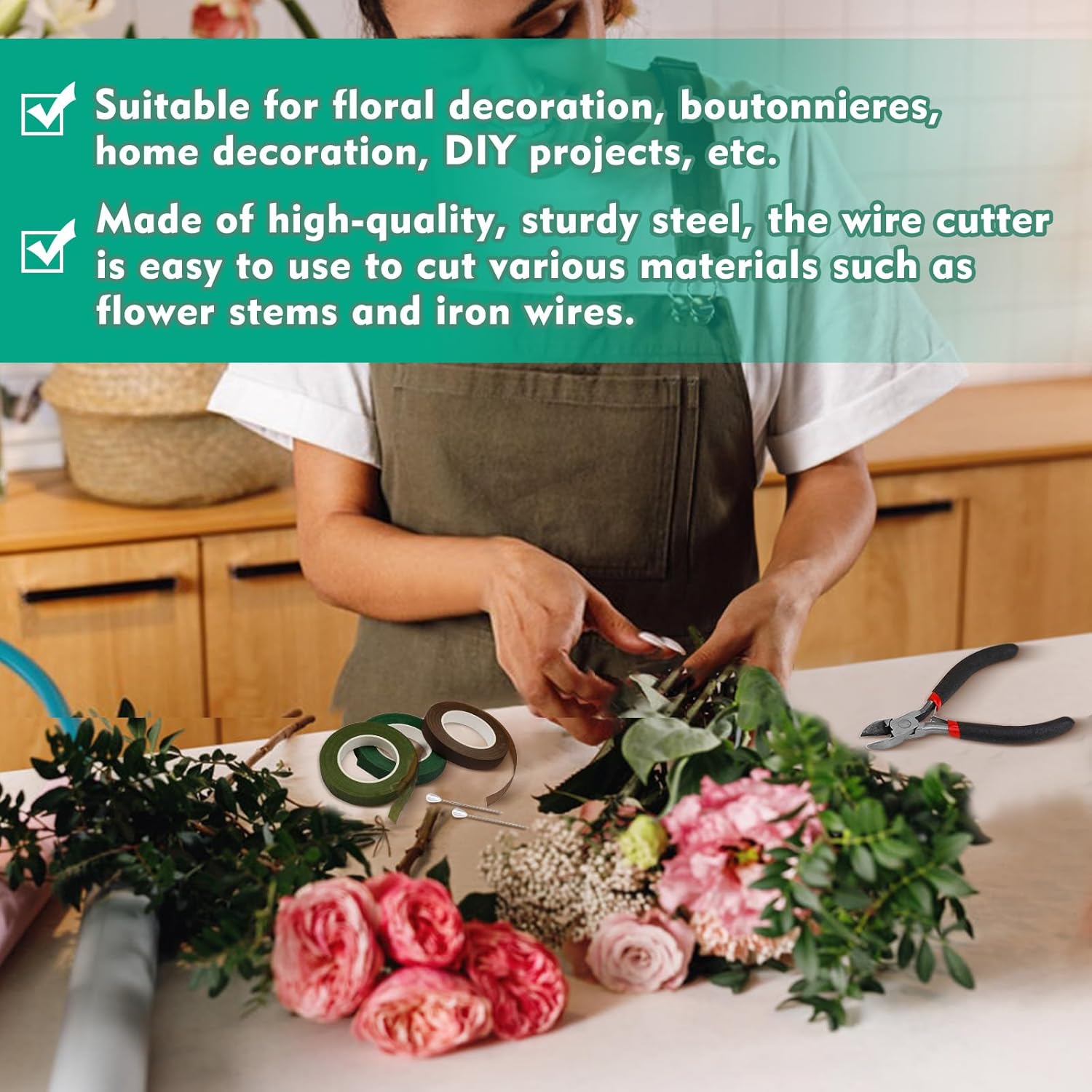 - Complete Floral Arrangement Kit: 100 pieces of green stem wire 26 gauge, 115 feet green paddle wire 22 gauge, 4 rolls of floral tape, 50pcs diamond pins, and 1 pair wire cutter. These wreath-making supplies are all you need for DIY flower arrangements, bouquets, boutonnieres, etc