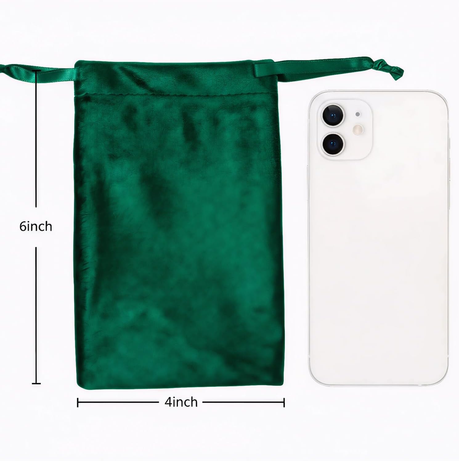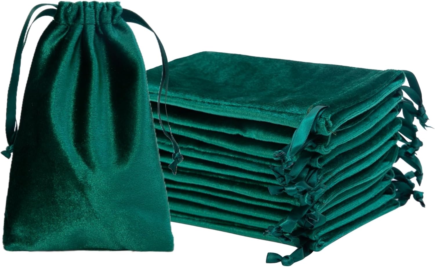 QIANF 12pcs Hunter Green Velvet Drawstring Bags 4x6 inches Velvet Cloth Small Gift Bags Jewelry Pouches for Storage Wedding Party Favor Christmas