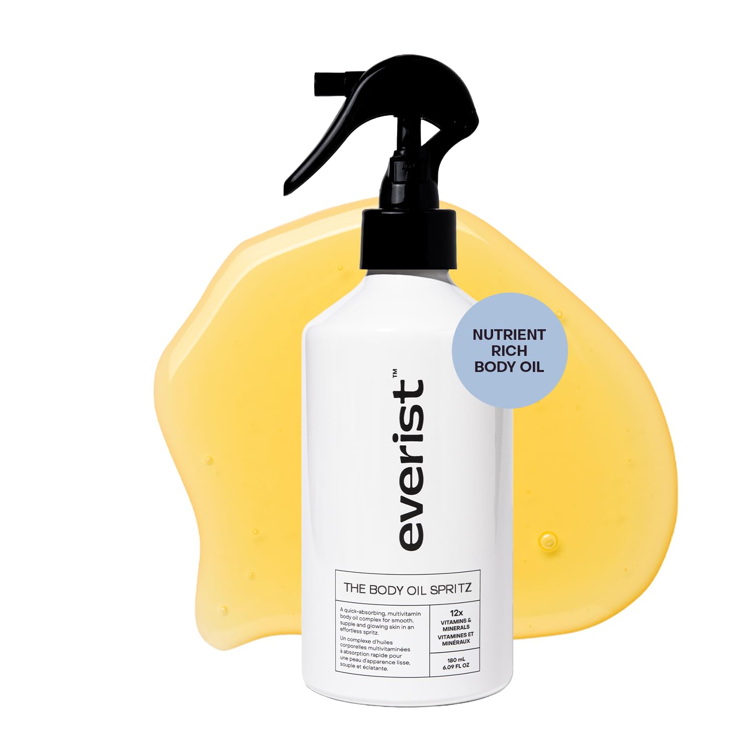Everist Body Oil Spritz – Waterless Vitamin-Infused Dry Body Oil with Vitamin C & E, Lightweight Fast-Absorbing Spray for Glowing Skin – Shower-Safe Aluminum Bottle, 6.1 fl oz