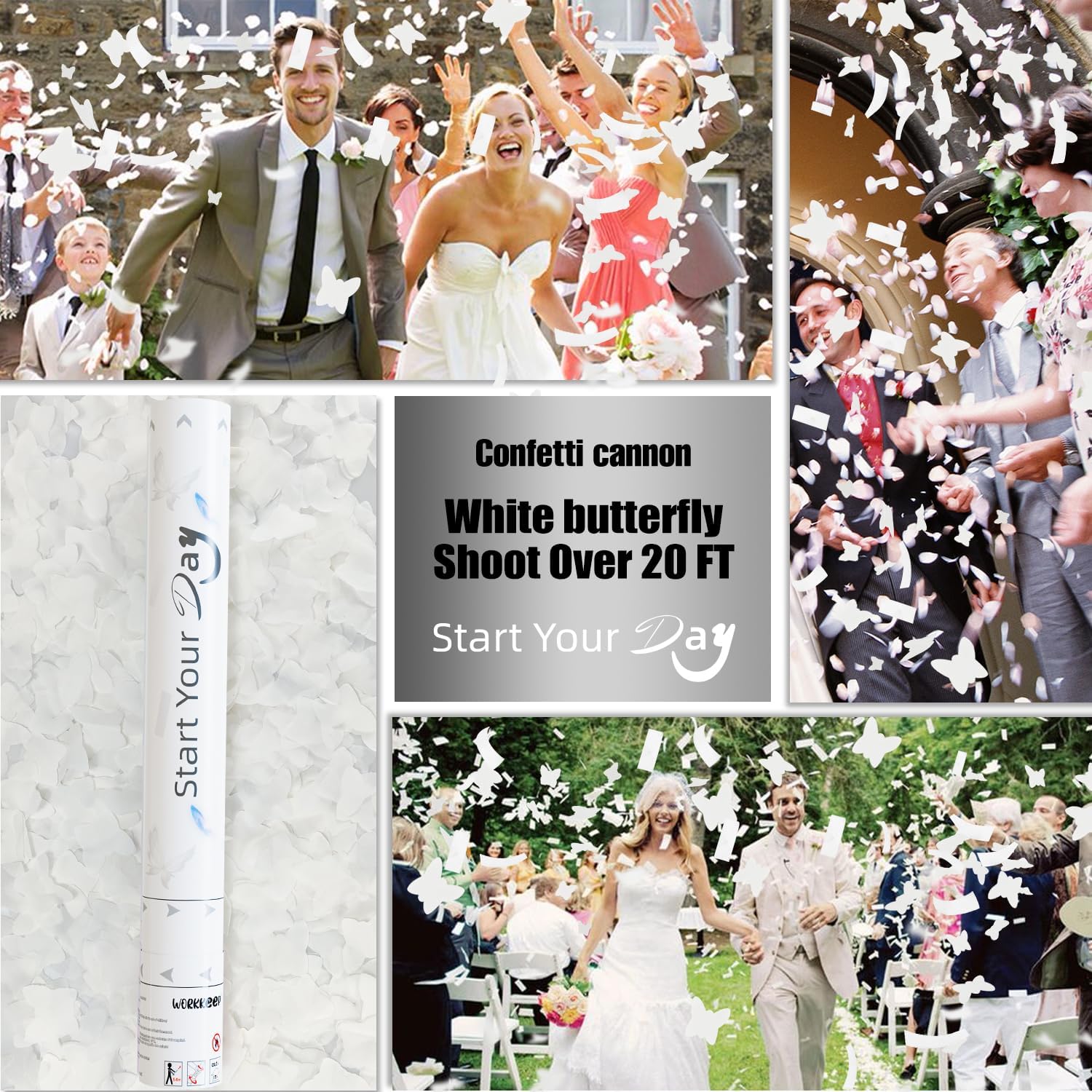 - Happy Celebration: - Each of our Confetti Cannons contains about 3 oz. More White biodegradable paper chips than any other similarly sized product on the market. You're sure to wow friends and family and capture awe-inspiring moments in the air in beautiful vibrant colors.