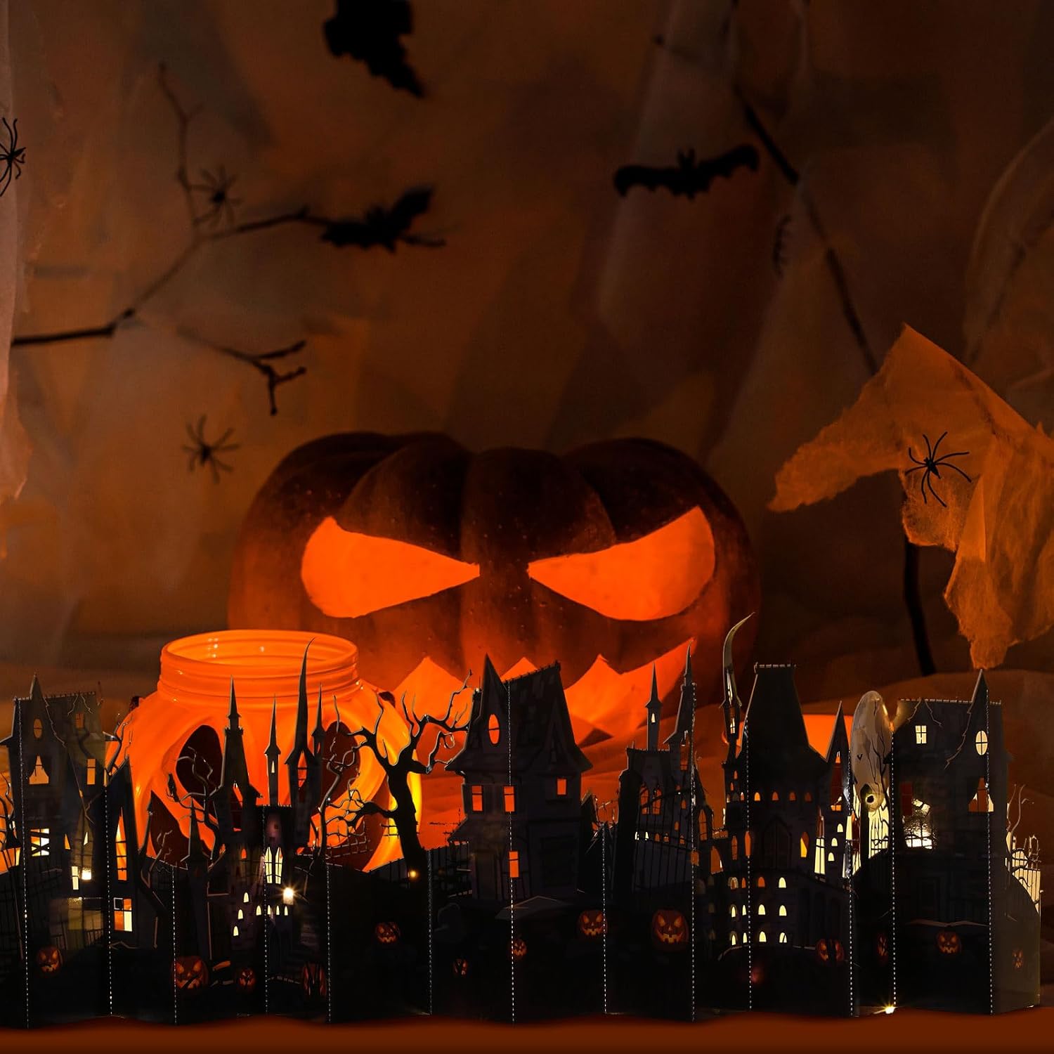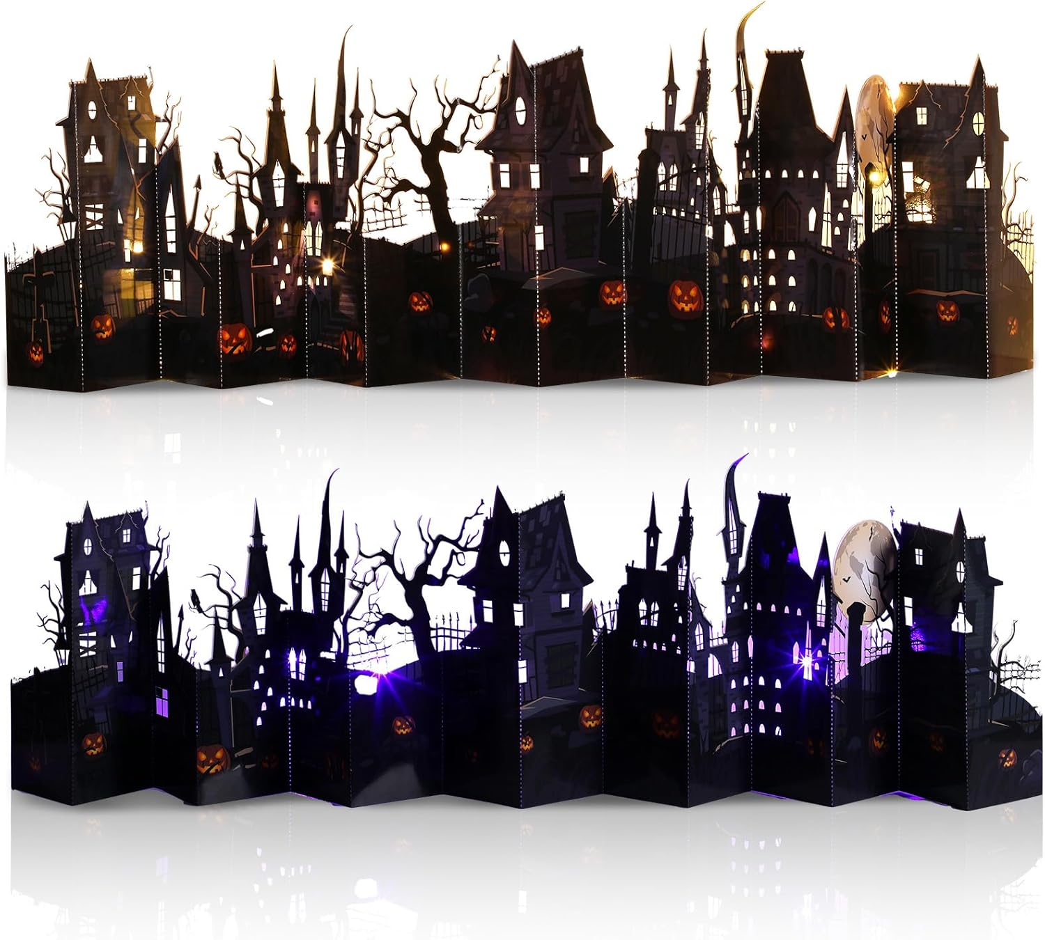 Geyoga Halloween Pop-up Card with 2 LED Lights 40" Halloween 3D Greeting Card Long Enchanted Eerie Village for Table Centerpiece Party Decoration