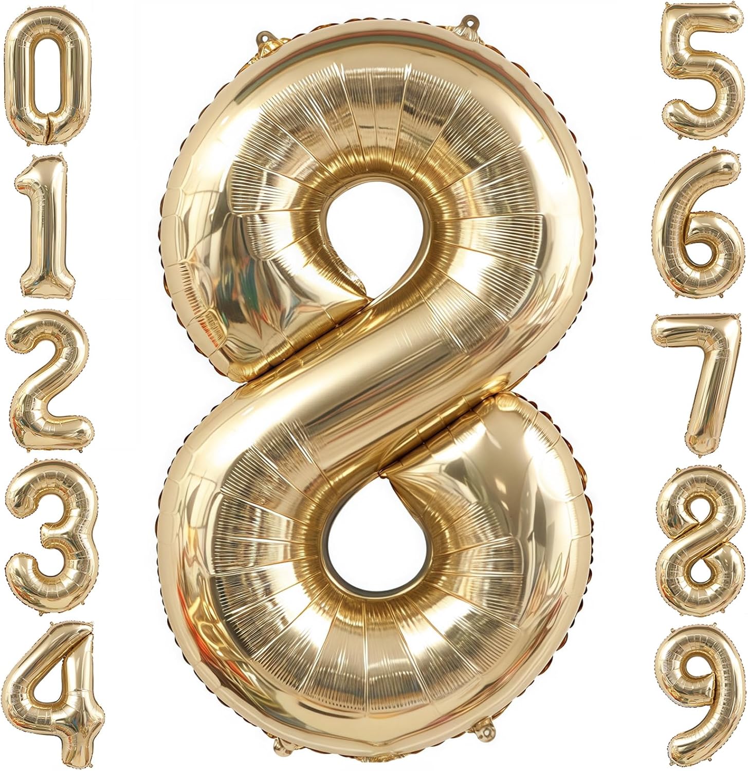 Champagne Gold 8 Balloon,40 Inch Light Gold Number 8 Balloon Big Foil Mylar Helium 8 Balloon for Birthday Party