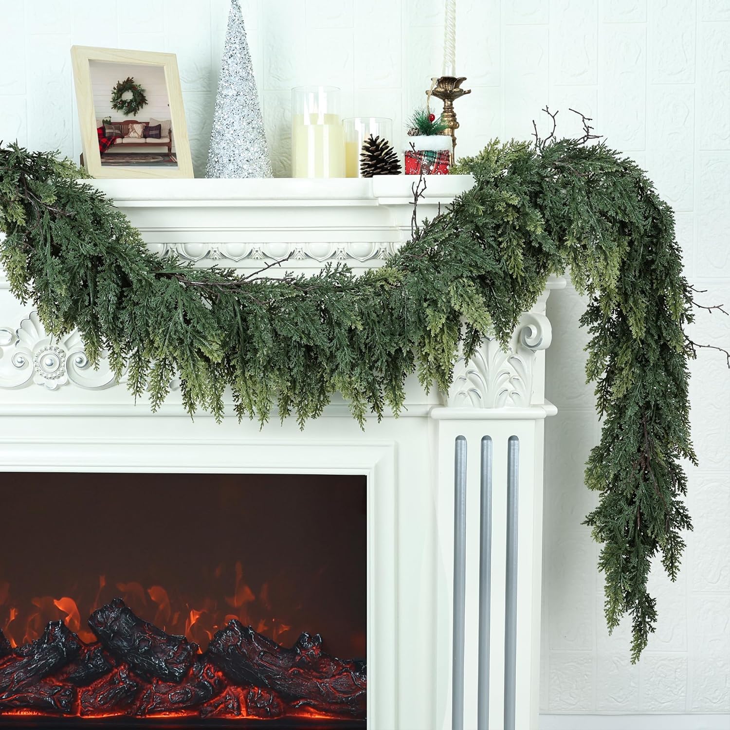 - Lifelike & Elegant Look: Designed with premium materials,this artificial Christmas garland captures the authentic charm of real Cedar. The soft,flexible needles cascade gracefully, offering a rich and elegant appearance.Styled as a lush cedar garland,Its true-to-nature feel helps bring an inviting touch of the outdoors into your home—perfect for setting a cheerful, festive vibe indoors
