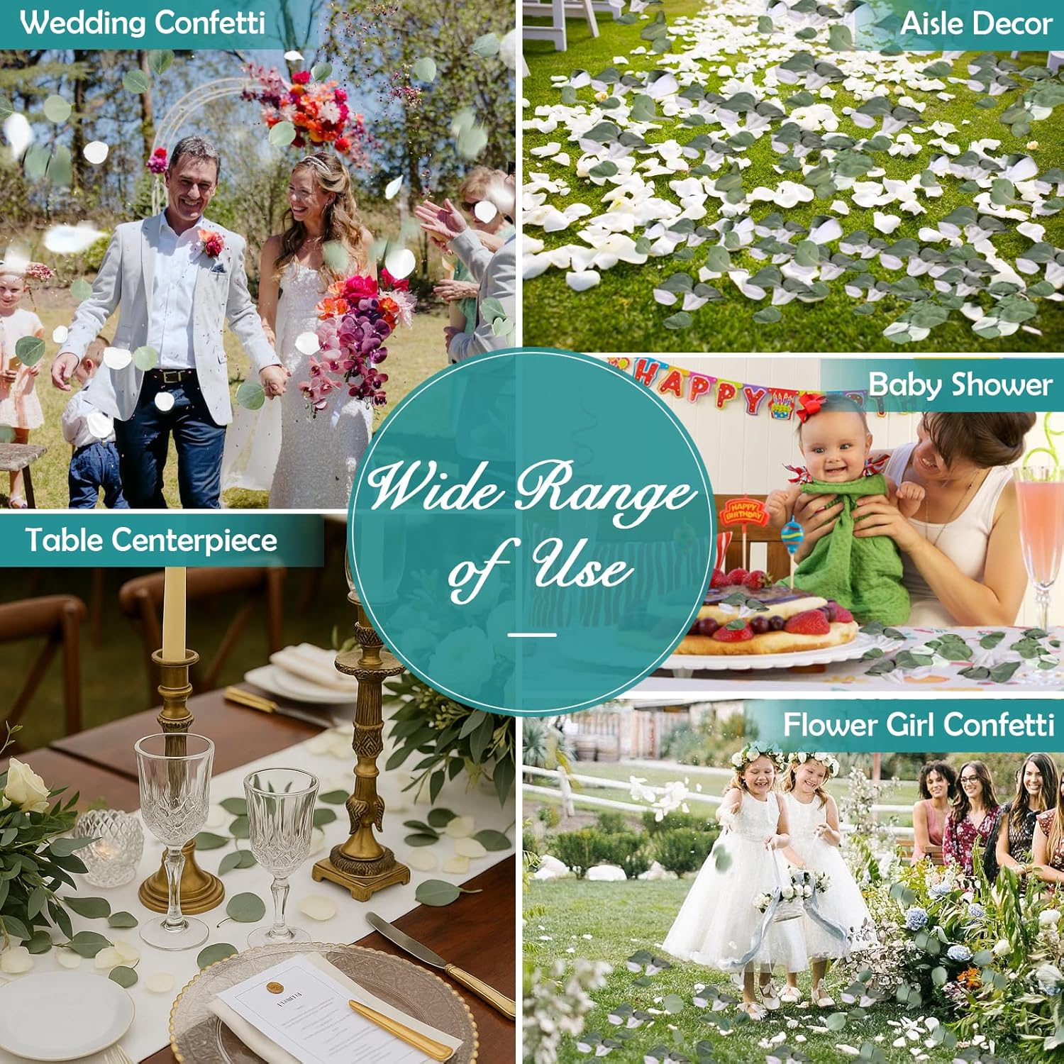 - Generous 200+ Pieces – Embrace Natural Imperfections. Each pack contains 2.12oz (60g) of petals(25g) + leaves(35g) – approx. 200+ pieces with organic texture variations. The white and green mix symbolizes pure love & lasting commitment, perfect for: Wedding table scatters; Baby shower Centerpieces; Valentine’s proposal surprises.