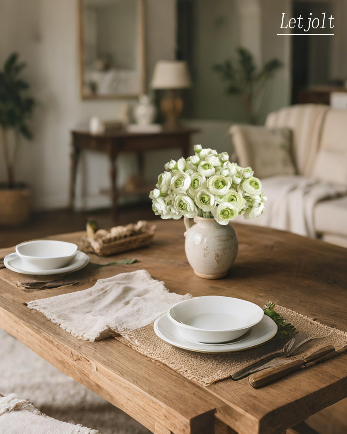 - Material: Ranunculus flowers are made of silk, and the stems are made of plastic.