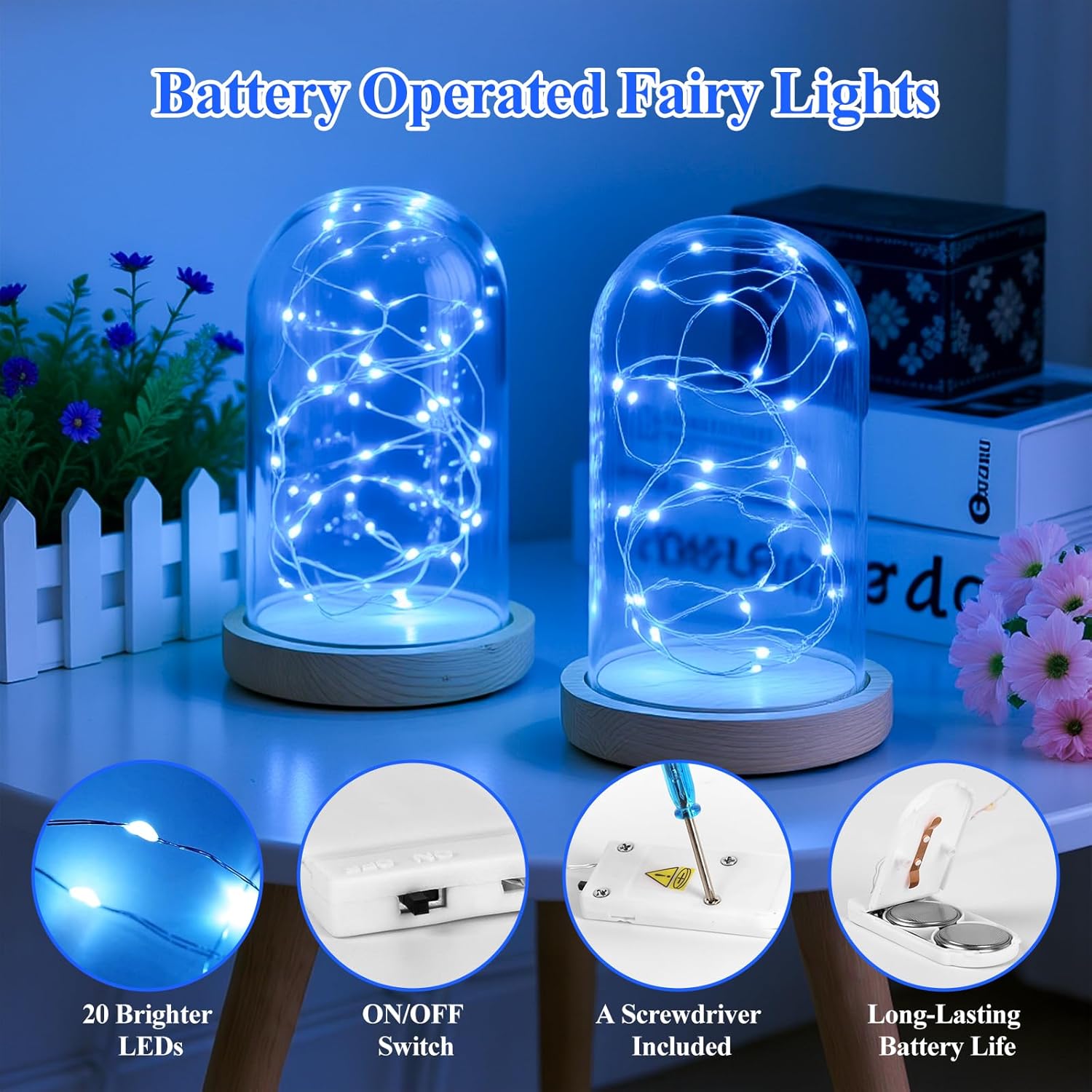 - 【Extended Battery Life & Timeless Glow】 Each set of LED fairy lights includes pre-installed high-quality batteries, providing up to 72 hours of continuous warm lighting and can be quickly turned on or off via a simple button. Perfect for holiday gatherings, weekend parties, or peaceful evenings at home, these twinkle lights add a cozy, romantic charm to any space