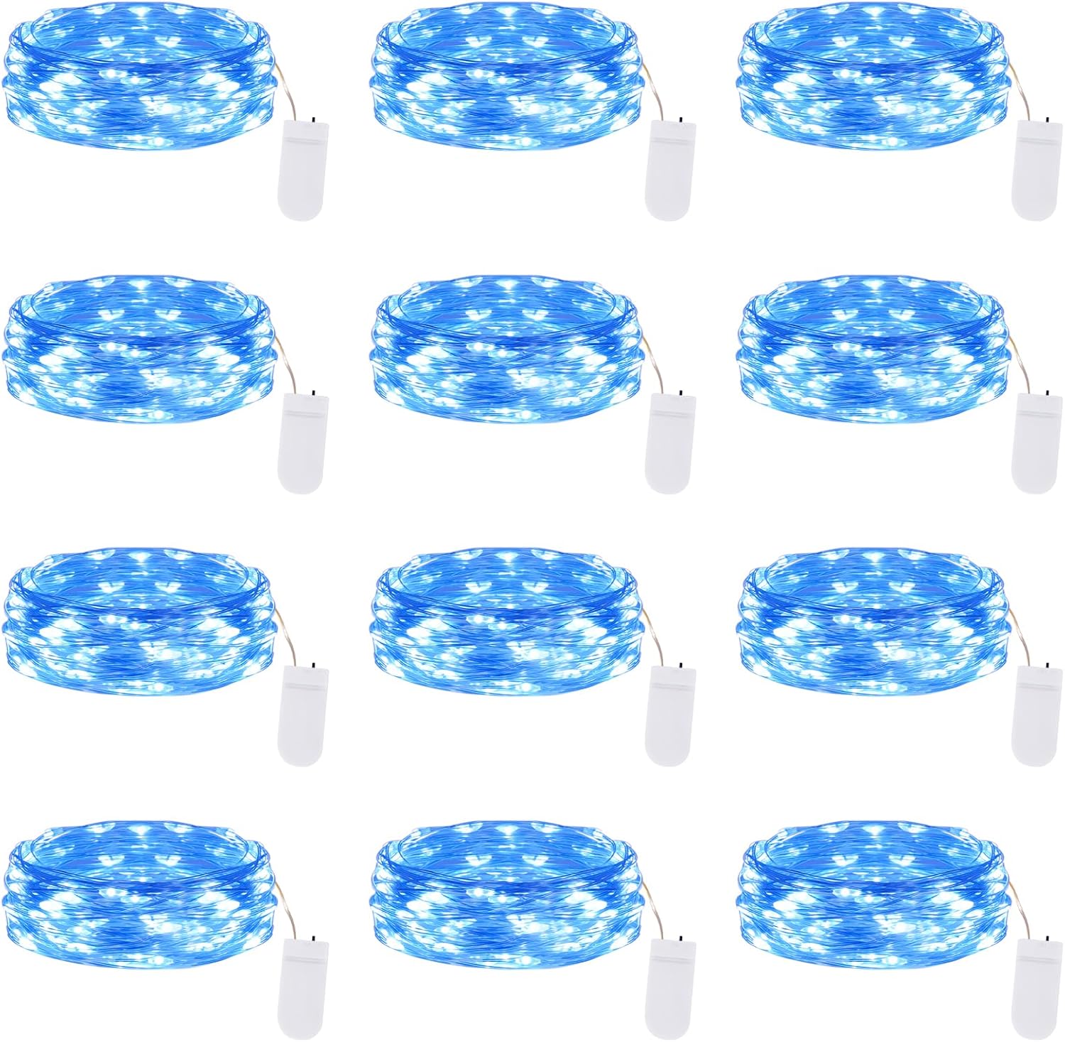 Lakumu 12 Pack Fairy Lights Battery Operated -7FT 20LED String Lights Silver Wire Firefly Starry Lights for DIY Christmas Decorations Mason Jar Wedding Party Centerpiece Table Decor, Blue
