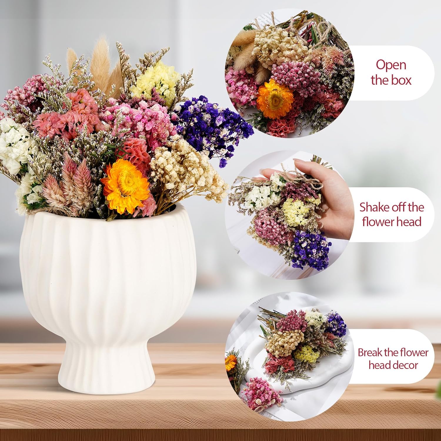 - Versatile: This mini dried flower bouquet is a perfect decoration for home, store, office, restaurant, banquet, party and many other occasions. Decorate bags, vases, windowsills and tables to fill your home with a warm spring atmosphere. It can also be used in handicrafts to add a different style to illustrations, ledgers and photo albums