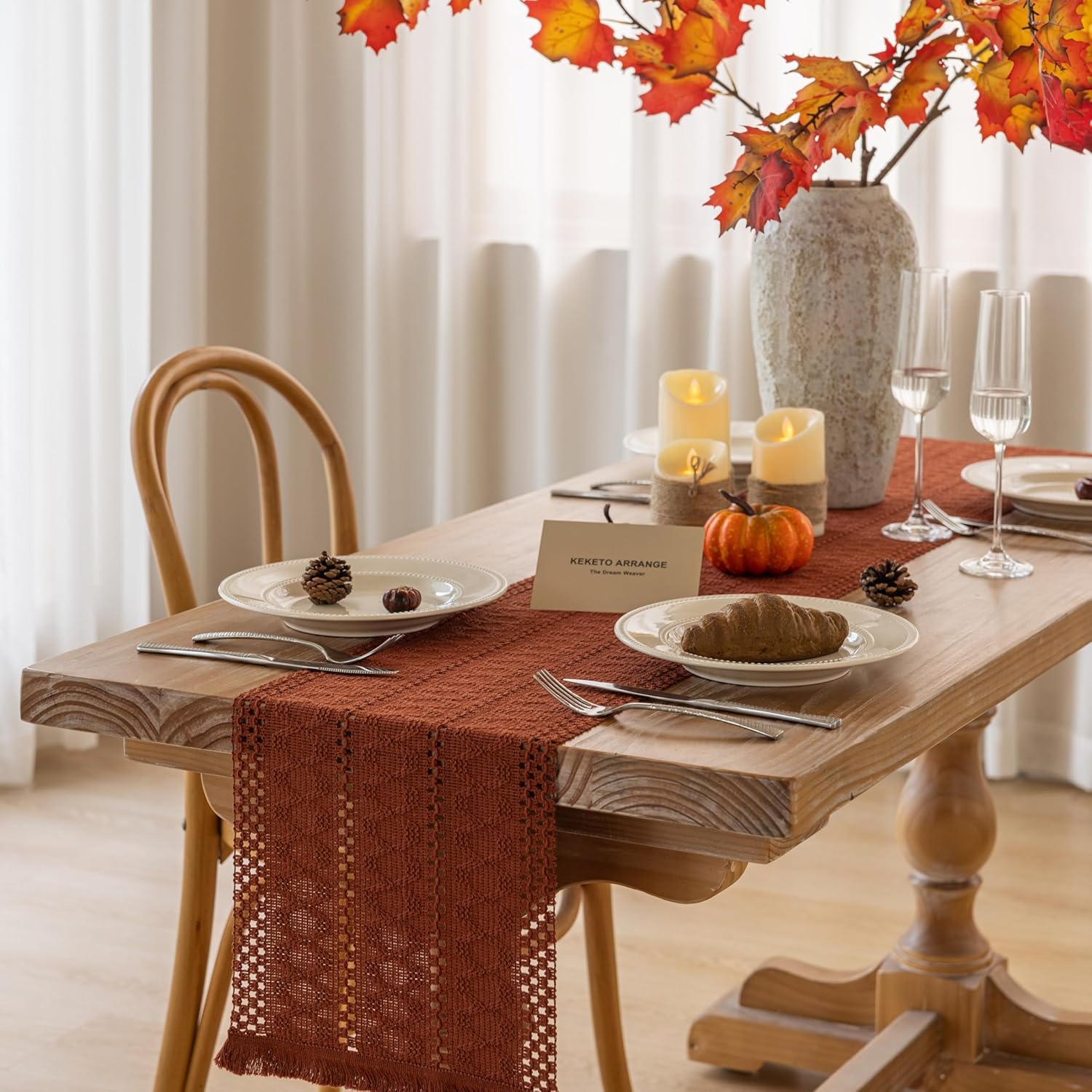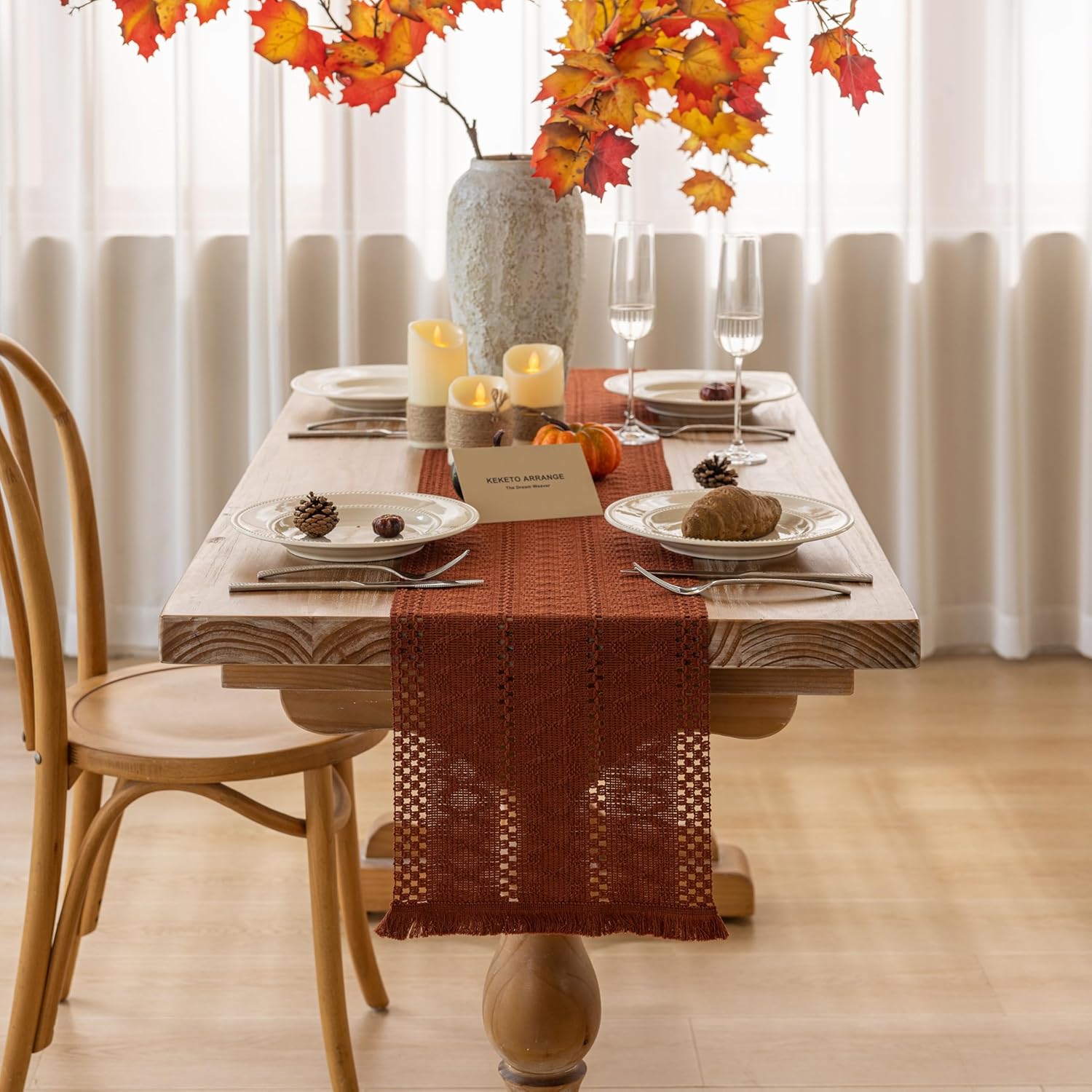 Boho Rust Table Runner for Home Decor 12x72 Inches Farmhouse Macrame Burlap Jute Rustic Dining Kitchen Centerpiece Bohemian Decor French Country Baby Bridal Shower Decorations