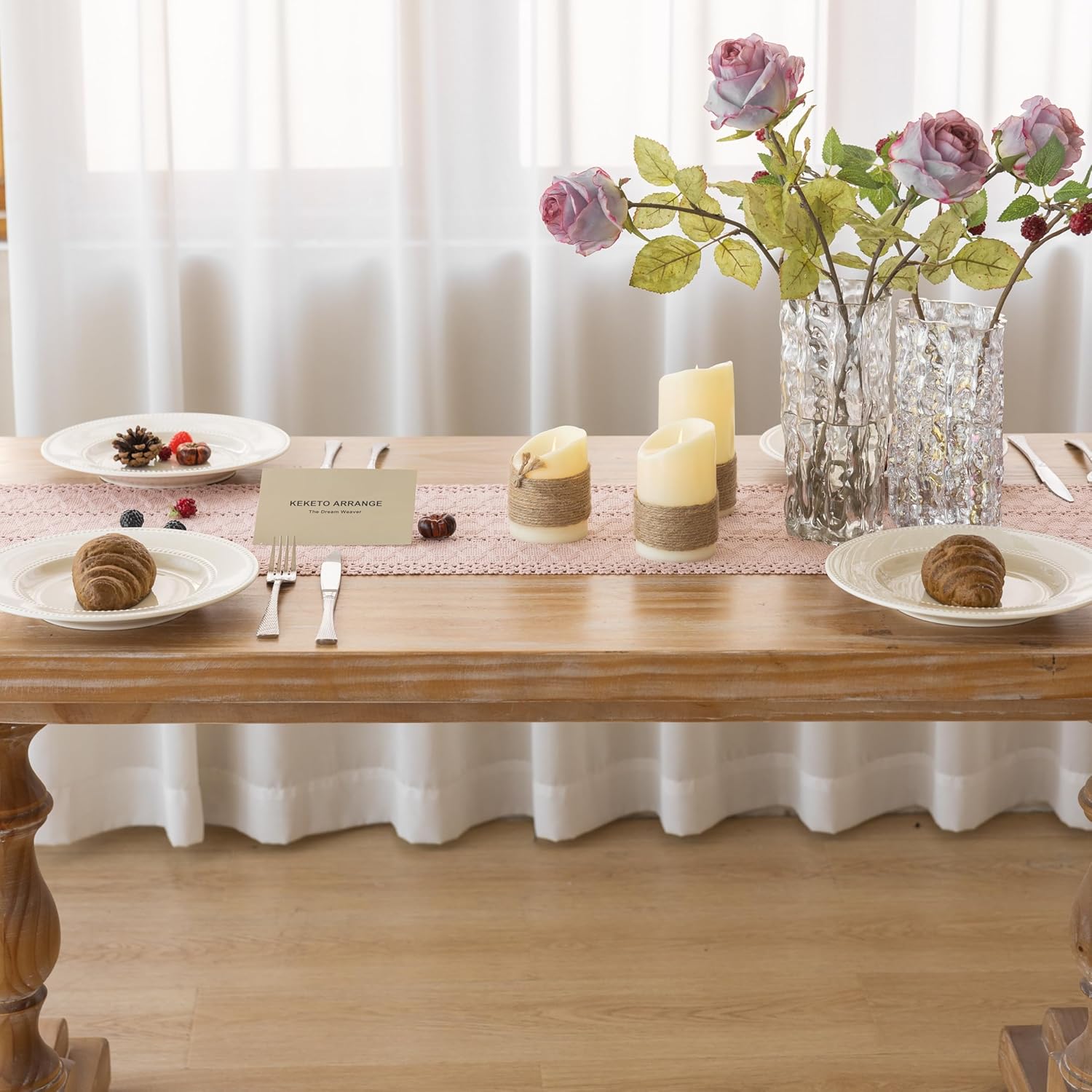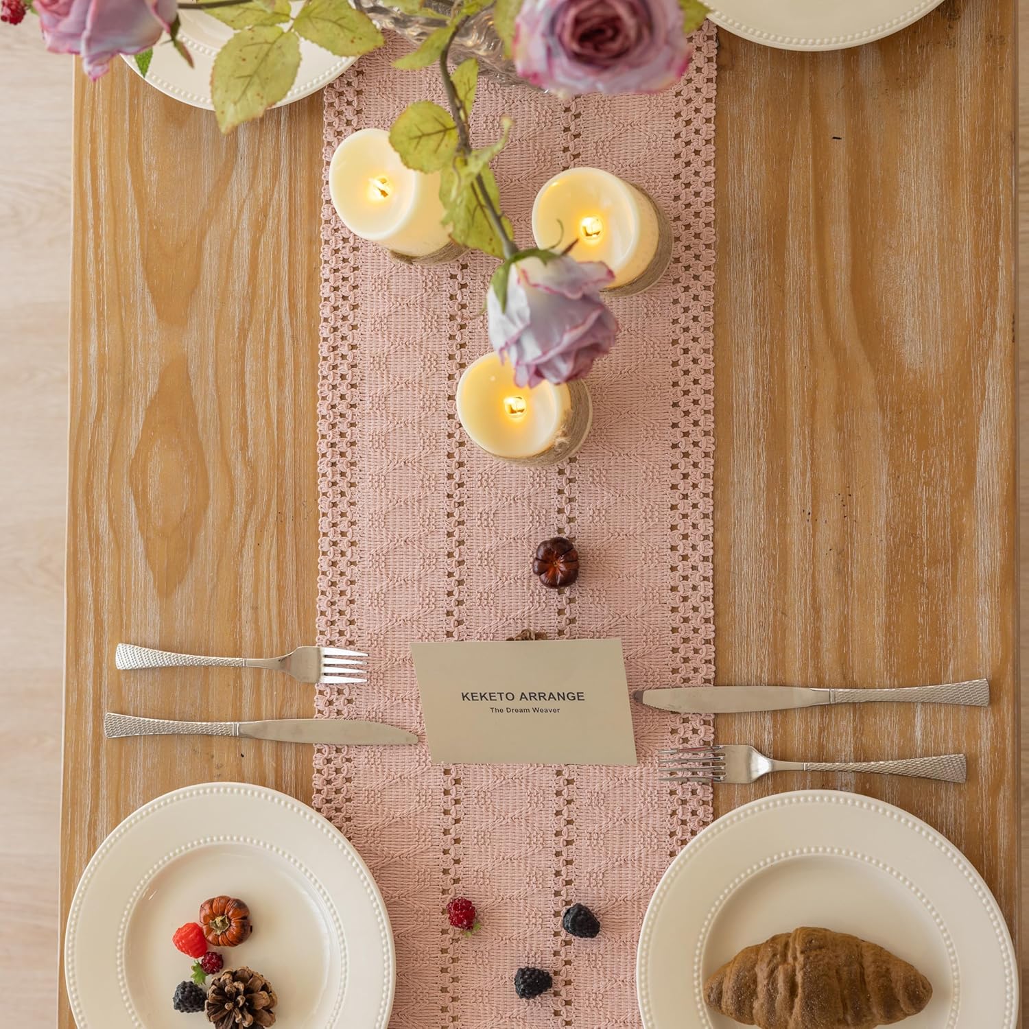 Boho Pink Table Runner for Home Decor 12x72 Inches Farmhouse Macrame Burlap Jute Rustic Dining Kitchen Centerpiece Bohemian Decor French Country Baby Bridal Shower Decorations