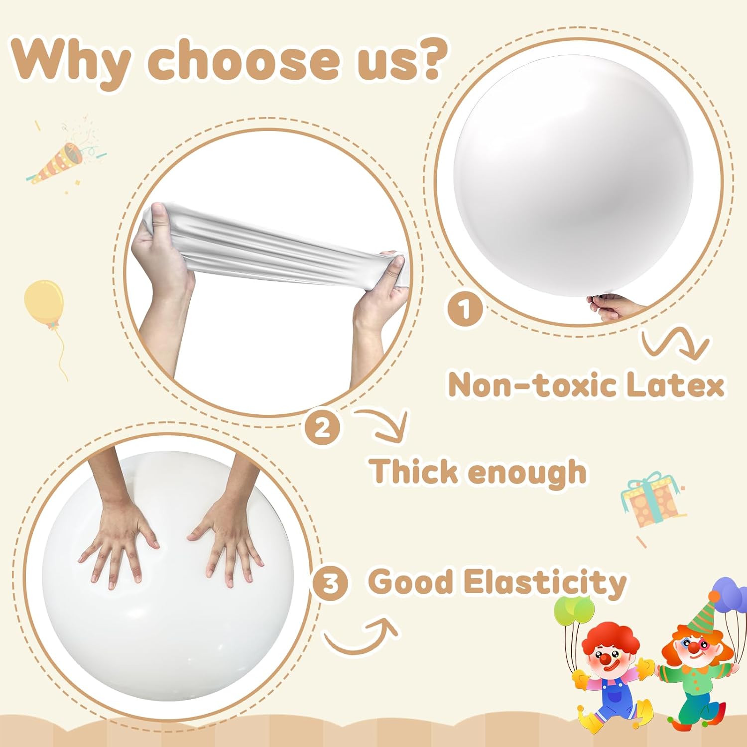 - 【Size& Quantity】Each sets contains 30pcs 18 inch large white balloons. Big balloons are safe, heavy thick, bouncy and Eco-friendly latex material which is durable and long-lasting quality, these big round balloons thicker and much strong than typical balloons for longer lasting fun.