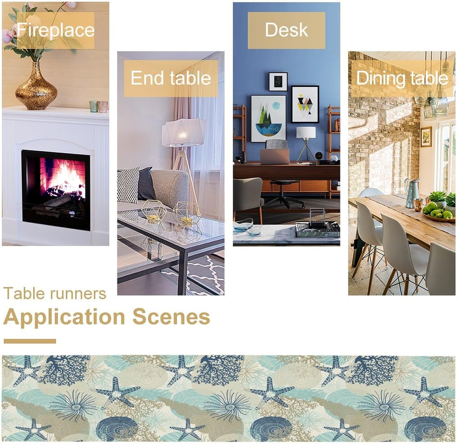 Nautical Coastal Table Runner,Ocean Themed Starfish Coral Conch Beach Kitchen Dinning Table Decoration for Indoor Outdoor Home Party Decor 13x120 Inch