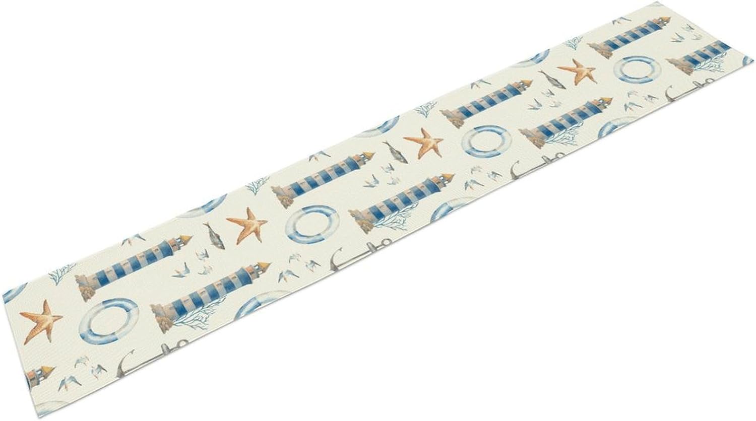 Blue Beach Table Runner, Tropical Ocean Coast Table Runner, Seashell Seasonal Nautical Restaurant Coffee Table Decorations for Home Holiday Party Indoor Outdoor 13x90 Inch