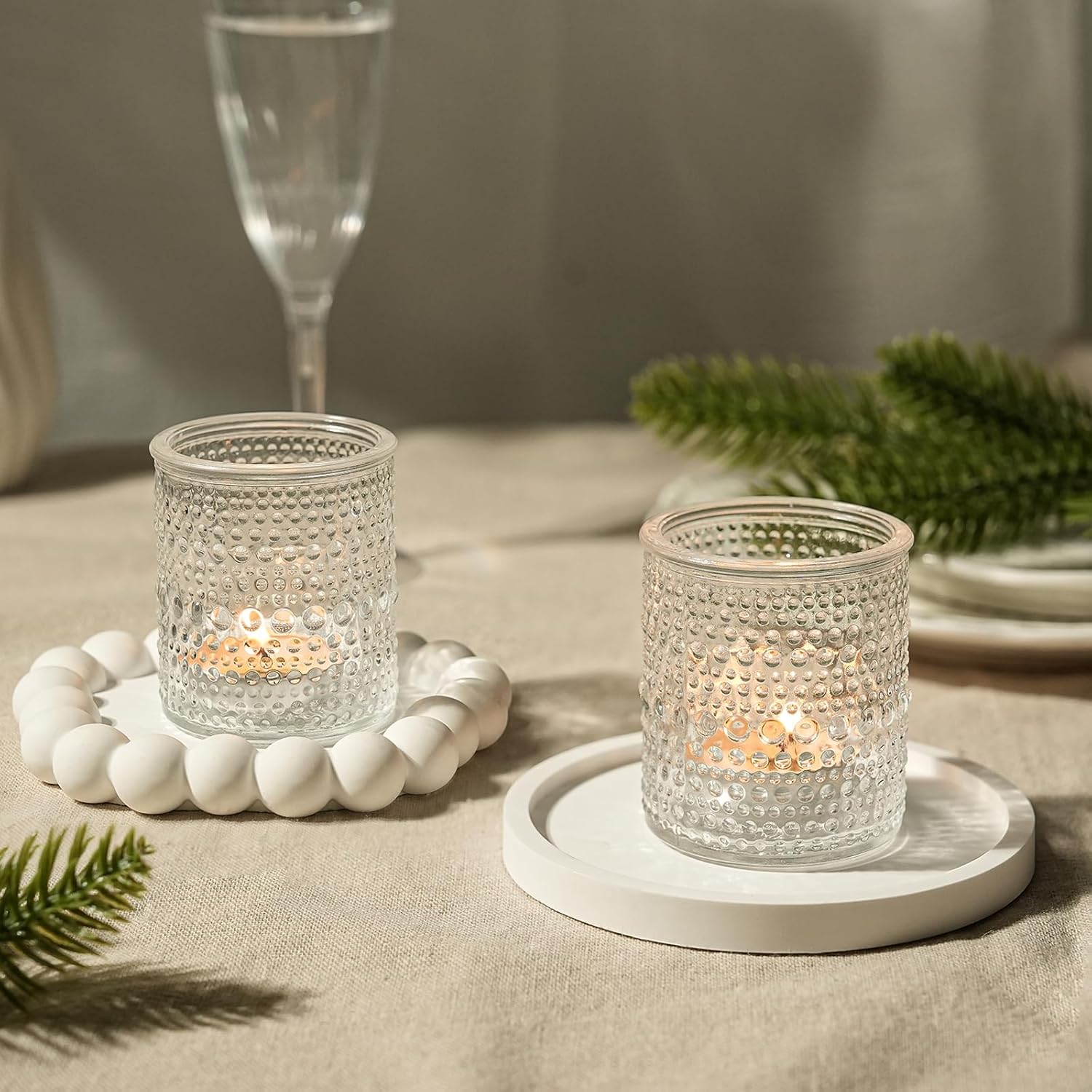 - 【CLASSIC POLKA DOT DESIGN】—Timeless elegance for any occasion: These chic, speckled tea light candle holders blend vintage flair with modern versatility. Ideal for weddings, centerpieces, or everyday décor, the polka dots refract candlelight beautifully, casting a warm, romantic glow. Mix and match colors to create stunning tablescapes for bridal showers, birthdays, or holiday celebrations.
