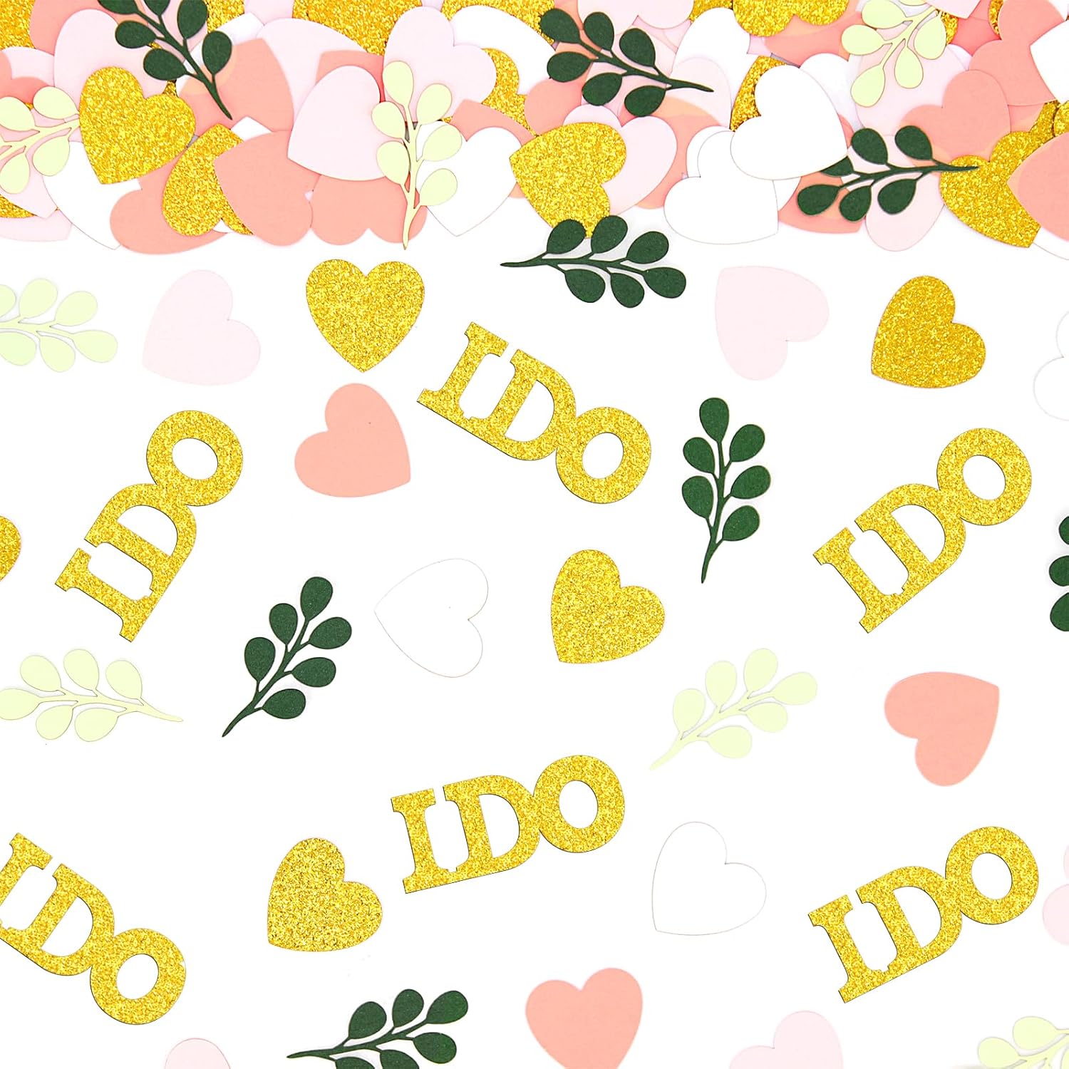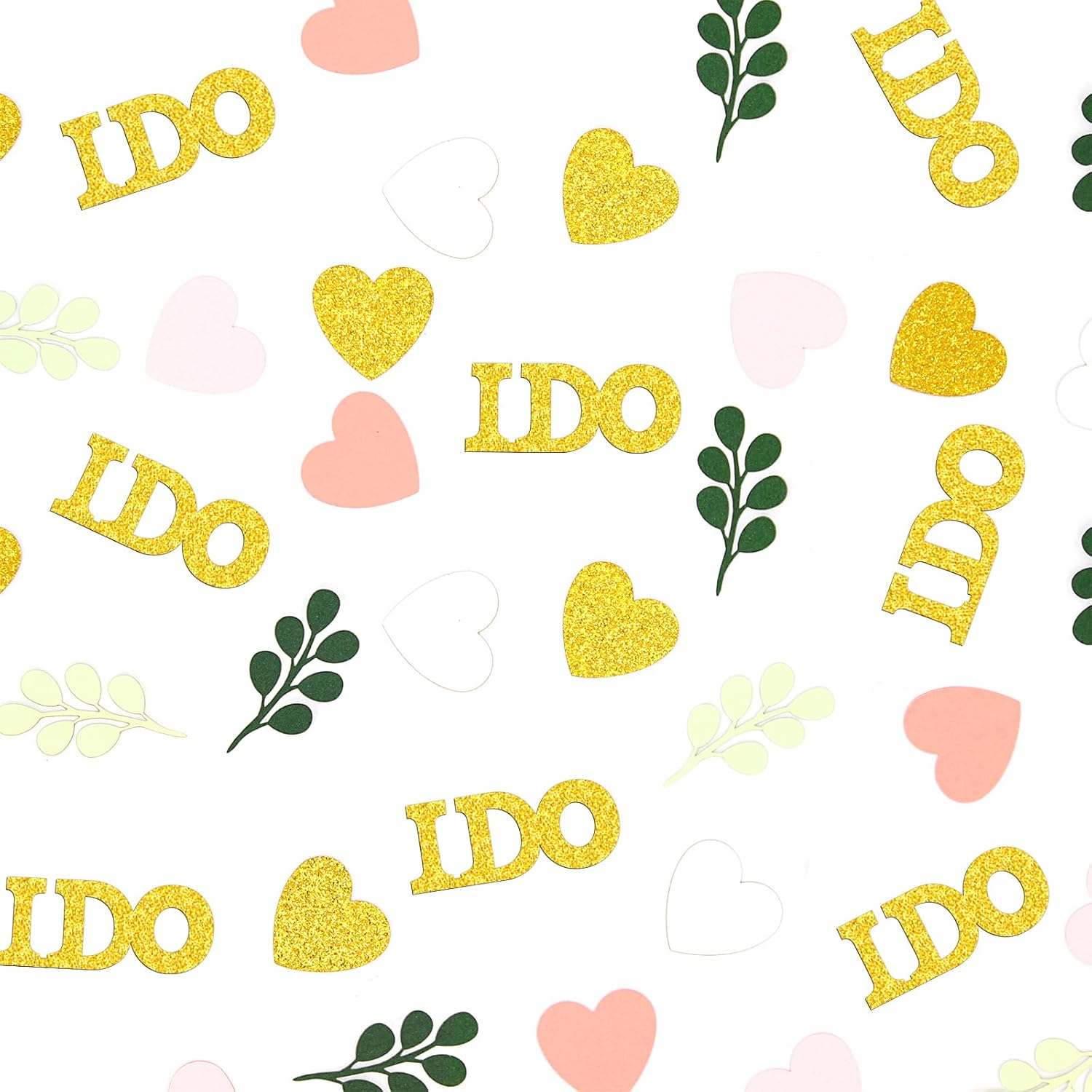 - 5.Proper Size and Premium Material.The heart confettis width 0.98inch,the sage leaves 1.5inch width,the I do letter 1.5inch width,looks perfect with premium fresh color papercard,adding a warm and energetic sense to your party table decorations.