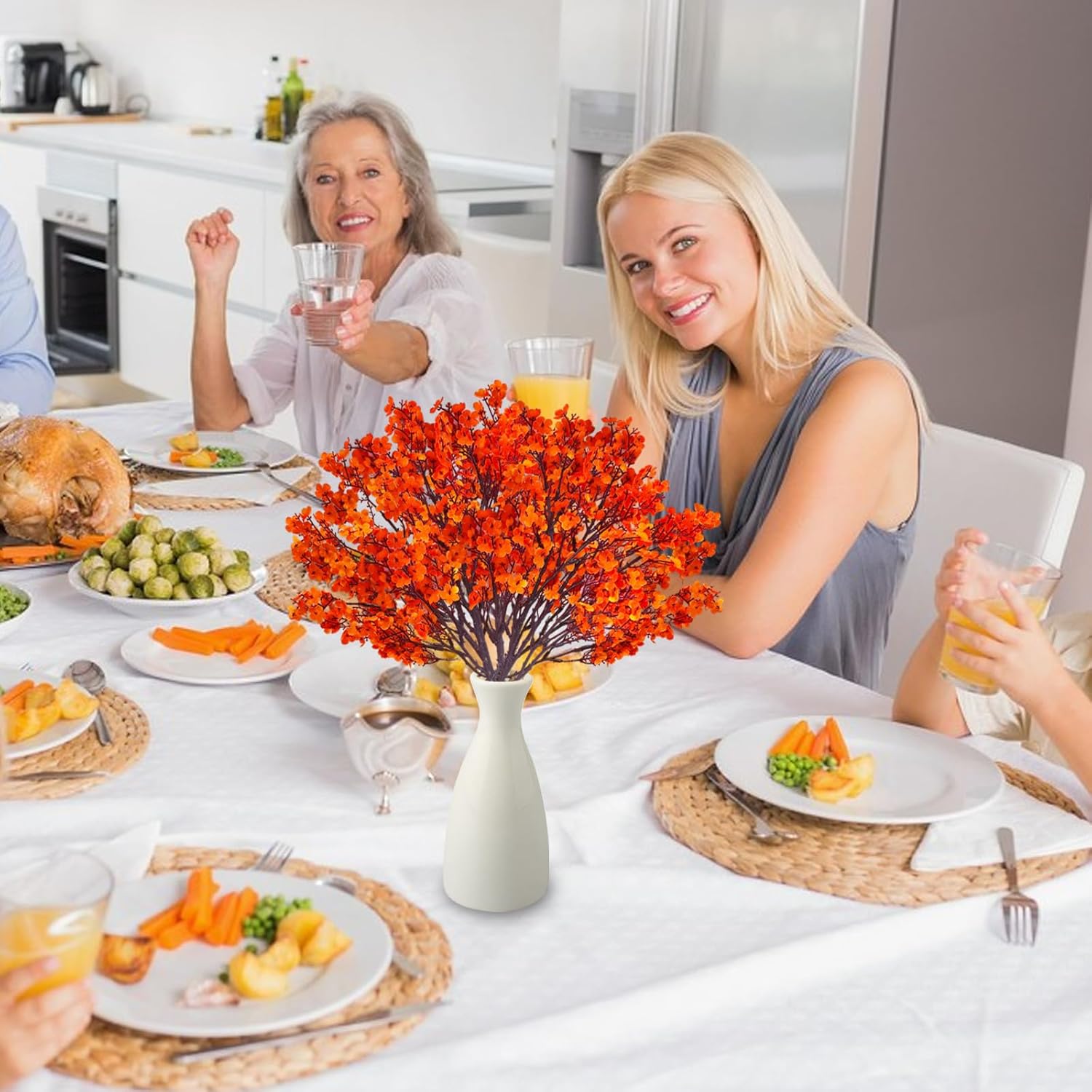 12PCS Fake Fall Flowers Orange Baby Breath Artificial Flowers Real Touch Silk Floral Arrangement Thanksgiving Autumn Table Centerpieces Home Kitchen Decor