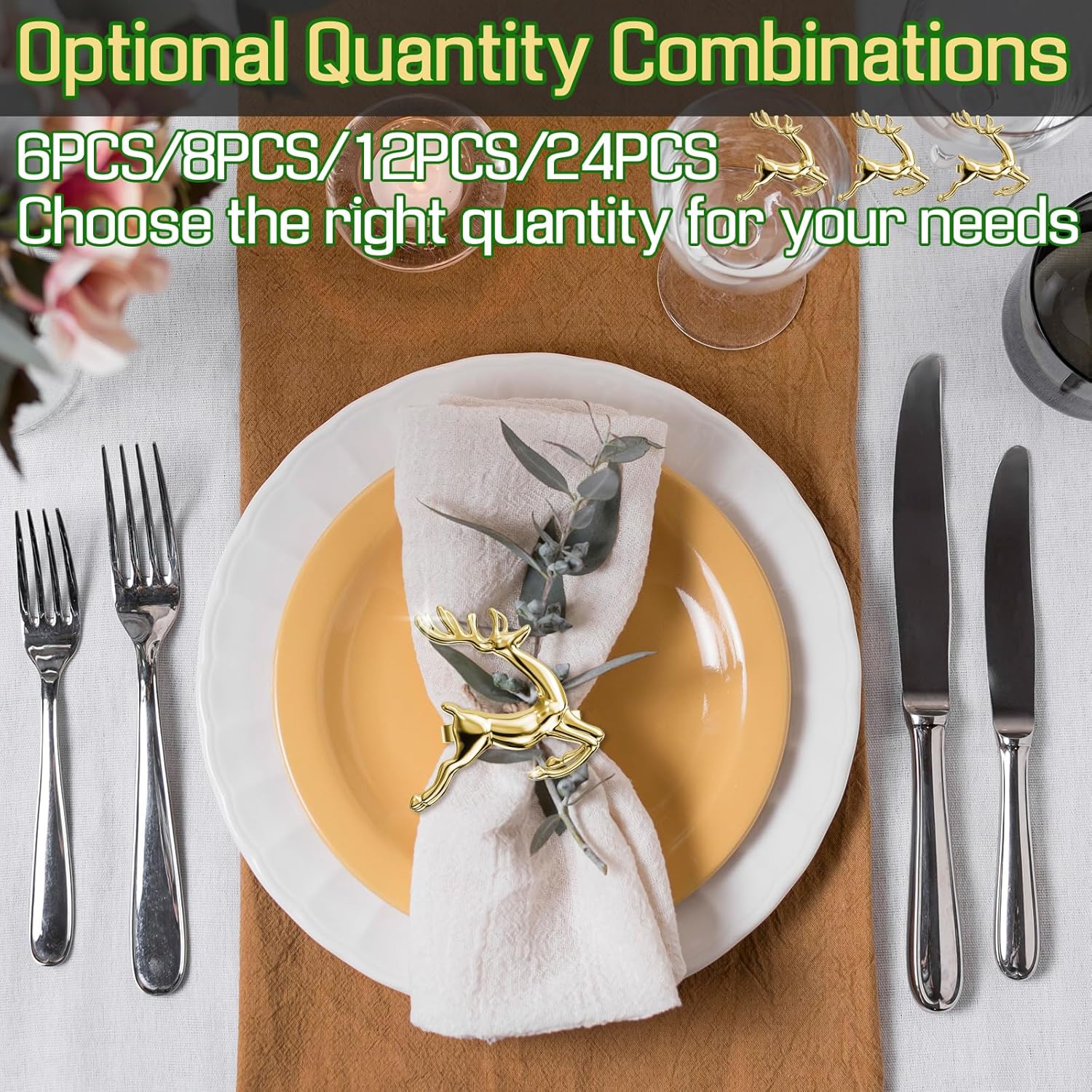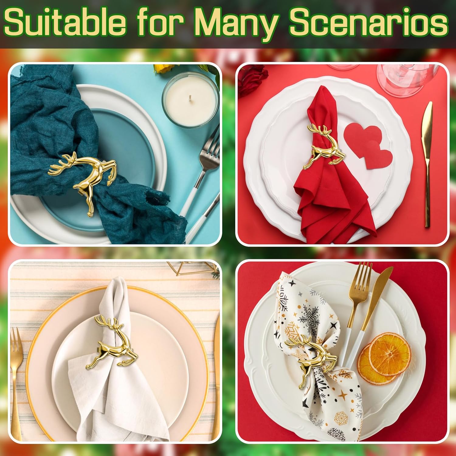 - Santa Bling Napkin Rings: You will receive gold deer napkins rings set of 24, simple and elegant, delicate and romantic, suitable for Christmas napkins cloth of different colors and materials. The reindeer Christmas decoration napkins rings could add more festive atmosphere to your Christmas table decorations for dinner party and become a highlight