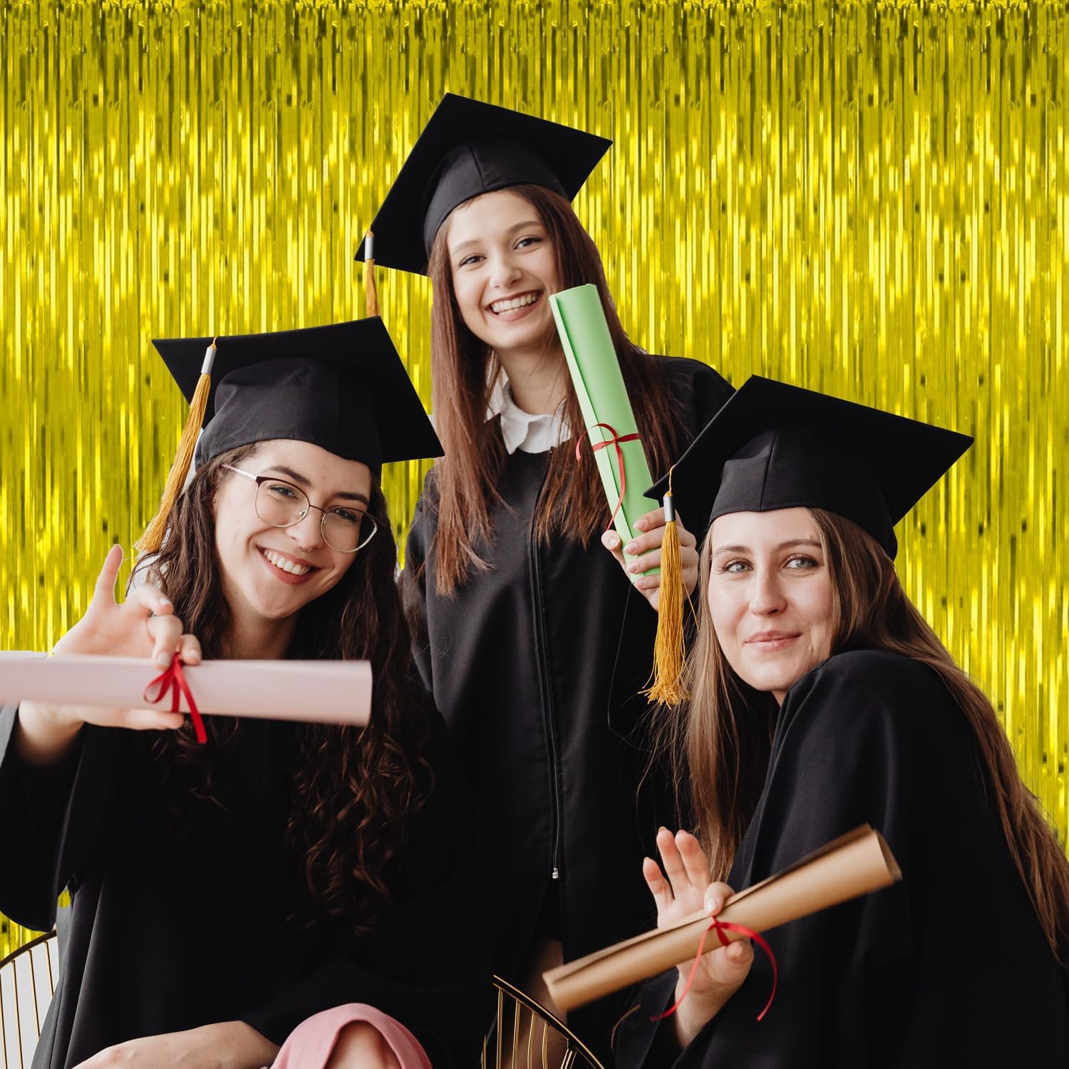 - Easy To Assemble: This classy gold shimmer wall backdrop curtain comes with an adhesive strip at the back so it's easy to hang on the wall. This gold foil curtain decorations could stay hanging for days. Also the cut of the gold foil curtain backdrop is pretty wide, so it won't easily strip down. These gold fringe curtain will surely transform your place into a classy place for gold party decorations, gold birthday decorations or graduation decorations class of 2025.