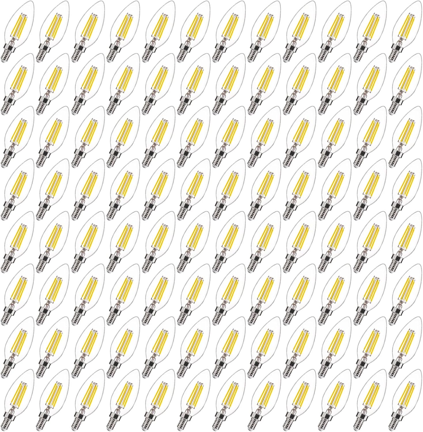FLSNT 96 Pack Dimmable LED Candelabra Bulbs, 40W Equivalent LED Chandelier Light Bulbs, E12 Base, 5000K Daylight UL,CA65 Listed.