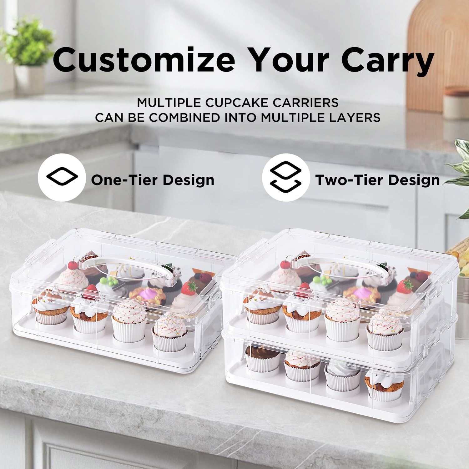 - 【Multipurpose Design】: This versatile cupcake carrier is also ideal for carrying cakes, cookies, muffins, or other baked goods thanks to its spacious and versatile design. Ideal for picnics, birthdays, and bake sales.