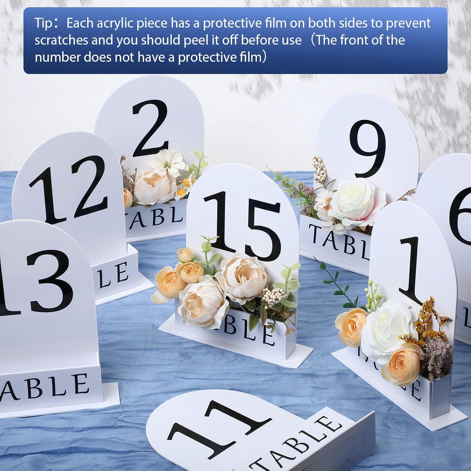- Unique Design: these table numbers for wedding are designed with big, beautiful White raised font design, giving your table numbers a three-dimensional look; The wedding decor is uniquely designed with a flower trough on the front, allowing you to place flowers to enhance the overall aesthetic; So everyone can spot their table, even from far away