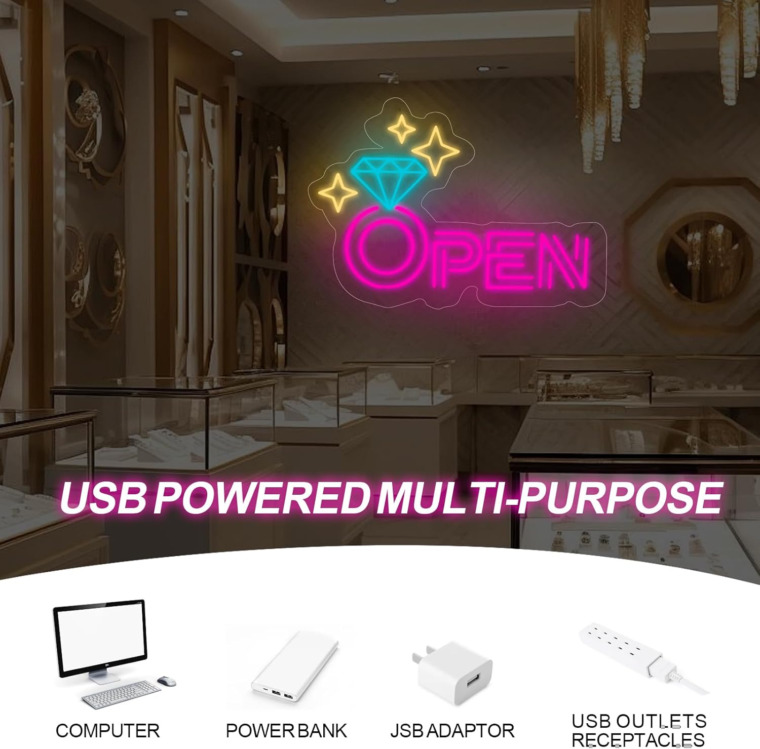- What you get: Diamond open neon sign x1, hanging chain x1, wall hooks x2. Every LED light undergoes rigorous quality checks before it ships. If you have any problem with our neon light, please feel free to contact us. We will try our best to serve you