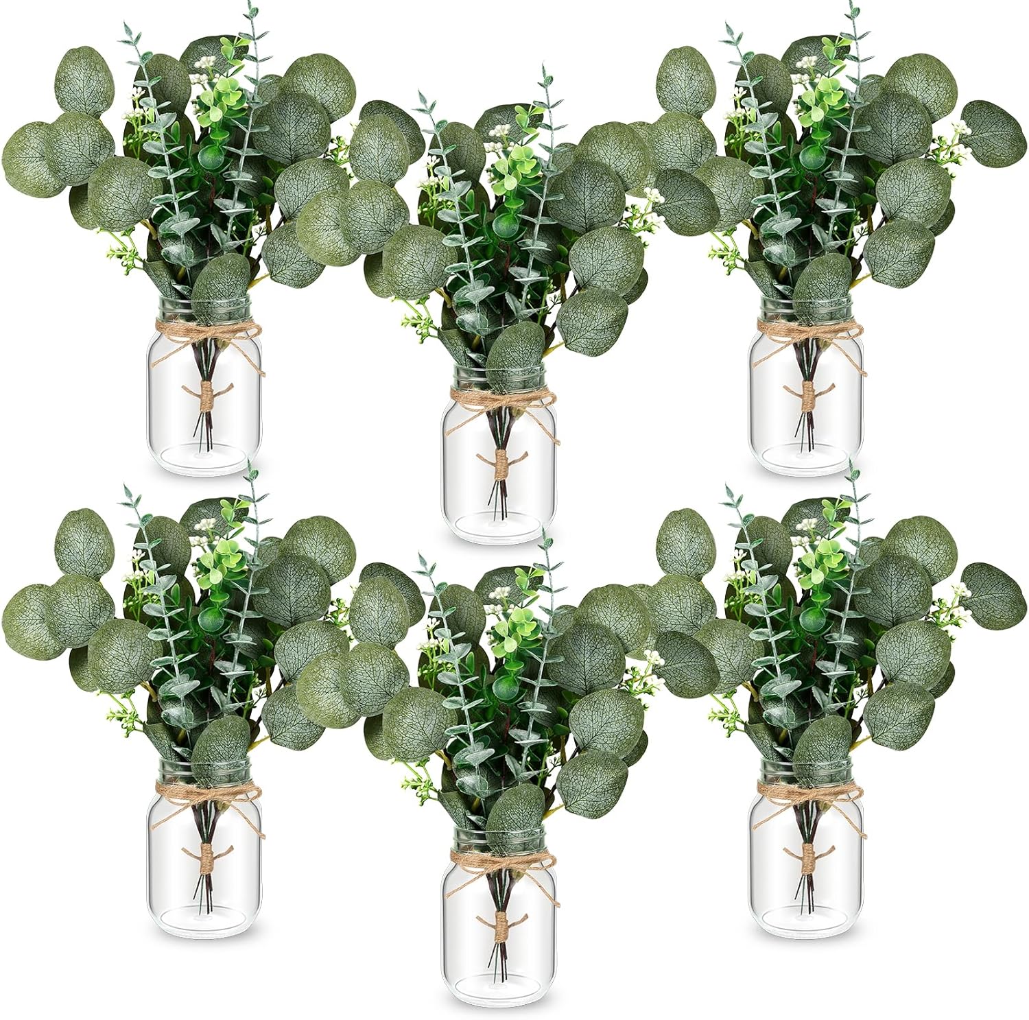 6 Set Centerpiece Table Decorations Mason Jar Table Centerpiece with Flower Mason Jar Wedding Centerpieces Vases Decor for Reception Engagement Party Bridal Shower (Eucalyptus)
