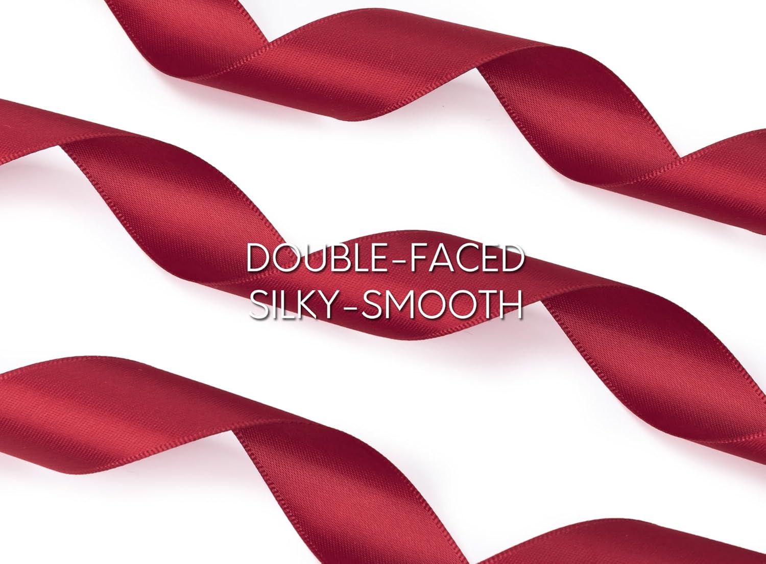 - ELEGANT LUSTROUS SHINE: This satin ribbon has a double-faced backing of high-quality, smooth and shiny polyester satin with a luxurious feel. The ribbon edges are neatly sewn. It is great for adding an elegant touch to your home decor and Christmas tree