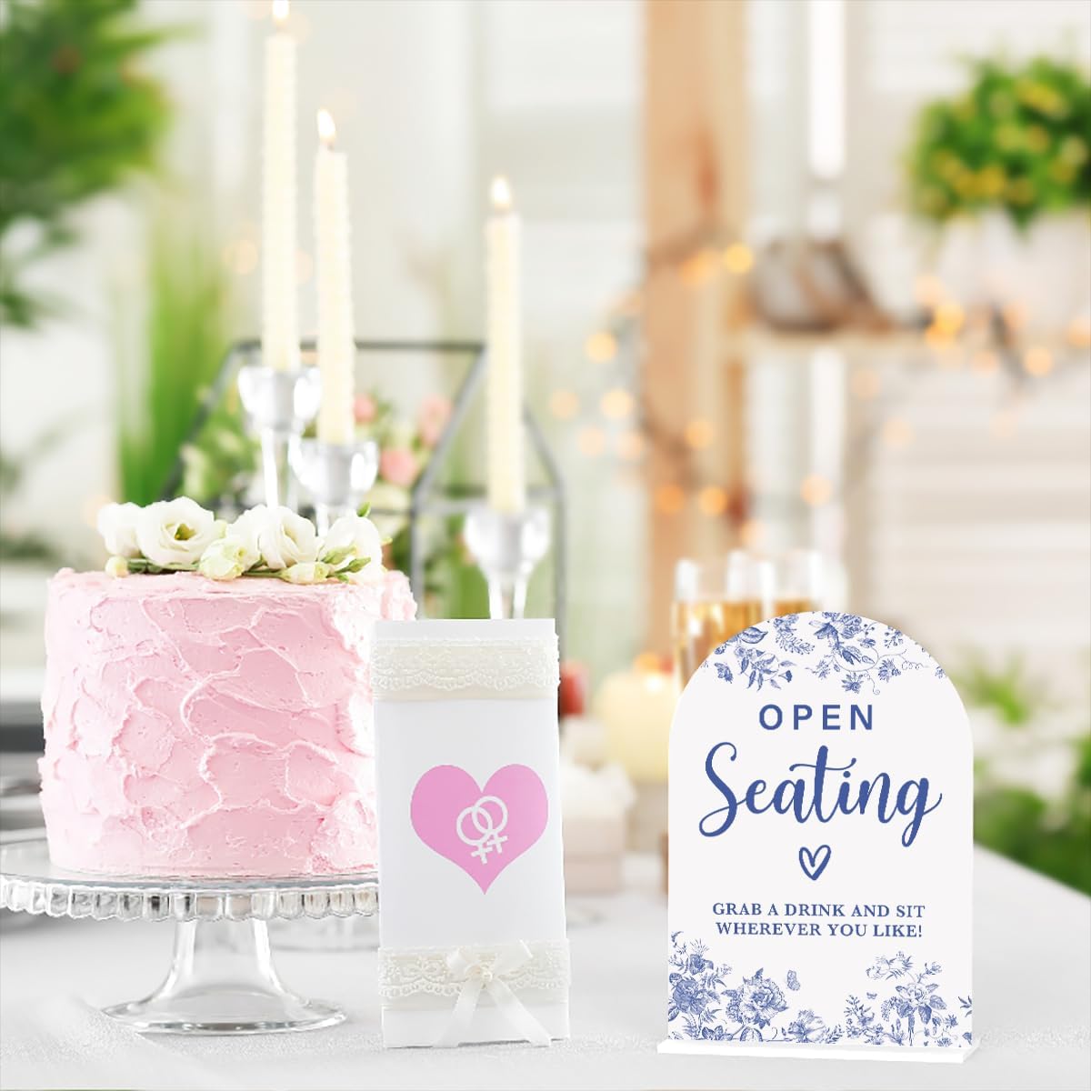 Acrylic Wedding Signs, Dusty Blue Wedding Decor, Blue Weddings Decor, Open Seating Signs for Reception, Modern Calligraphy Arch Acrylic Table Top Sign for Weddings Parties Dinners (White)