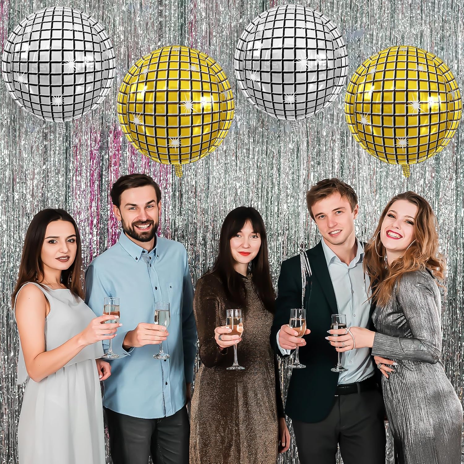 - MATERIAL:Our 22inch gold silver giant 4d disco ball balloons are with neat edges,not easy to explode and leak,non-toxic,with vibrant colours,Combine them with complementary décor for an eye-catching setup.