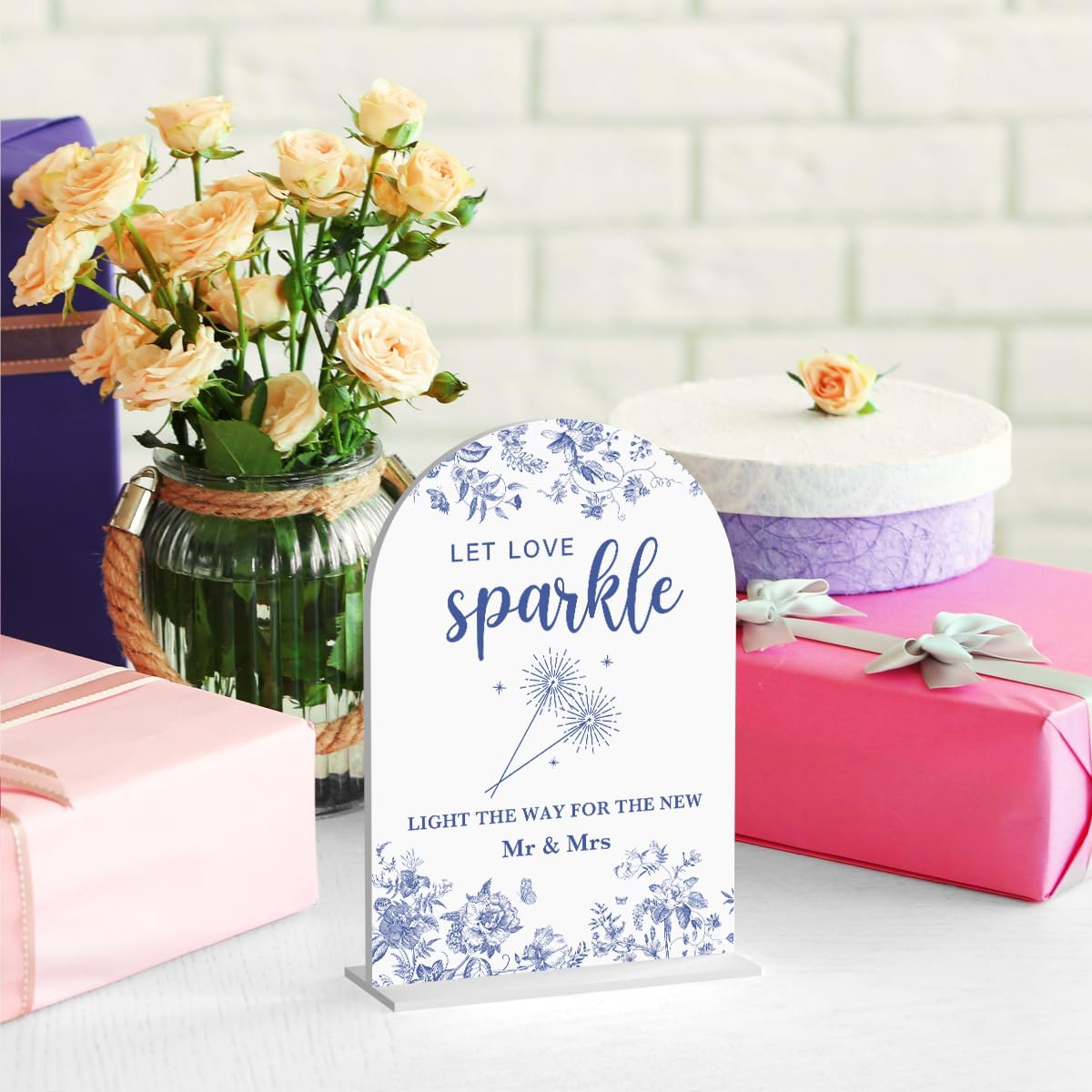 Acrylic Wedding Signs, Dusty Blue Wedding Decor, Blue Weddings Decor, Let Love Sparkle Signs for Reception, Modern Calligraphy Arch Acrylic Table Top Sign for Weddings Parties Dinners (White)