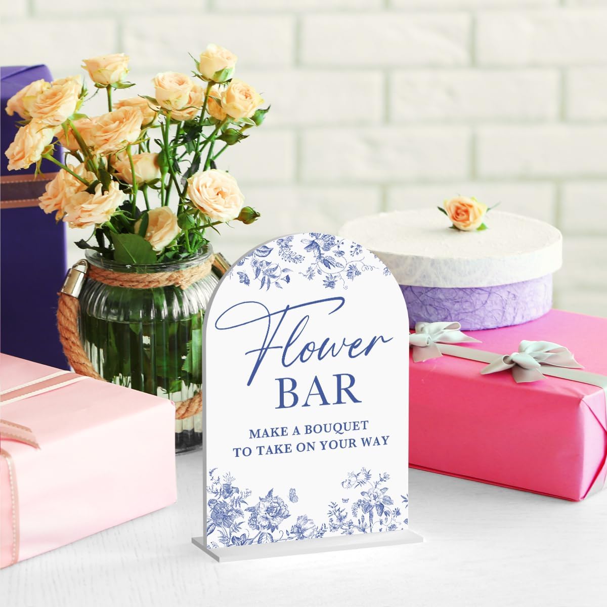 Acrylic Wedding Signs, Dusty Blue Wedding Decor, Flower Bar Desk Decor, Flower Bar Signs for Reception, Modern Calligraphy Arch Acrylic Table Top Sign for Weddings Parties Dinners (White)