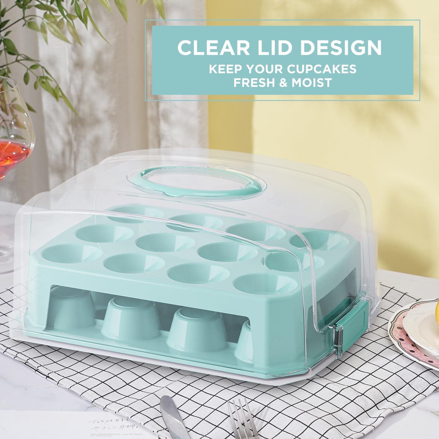 Cupcake Carrier 24 Count, Green Cupcake Holder, Cupcake Container with Lid and Handles, Muffin Traveler Two Tier Stand Reusable Cupcake Box