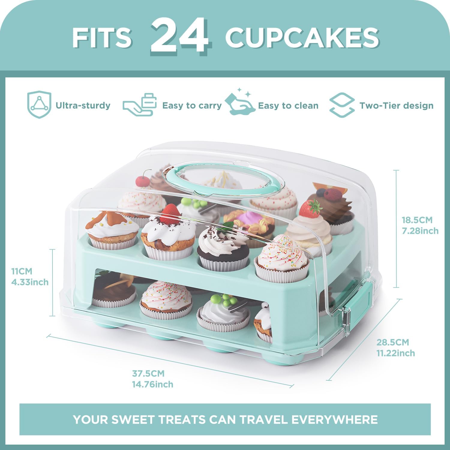 - Holds 24 Standard Cupcakes Securely - Fits two dozen regular-sized cupcakes in two stackable tiers. No more messy transfers!