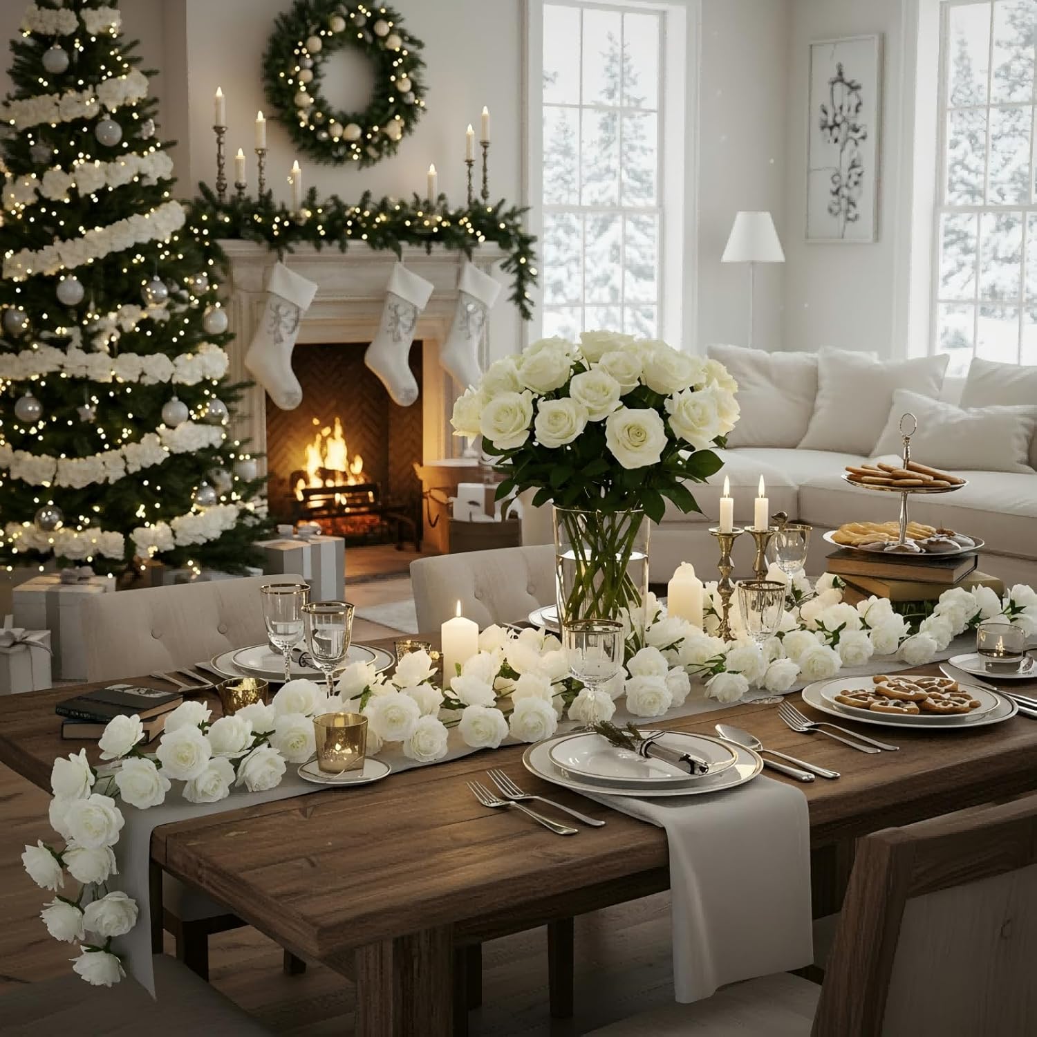 - Package Includes: you will receive 2 artificial white rose vines; Each rose garland is 6 feet long and diameter of each flower measures about 3.7 inches; Each rose wreath contains 62 white roses; If you feel that the length is not enough, you can connect multiple vines together for use