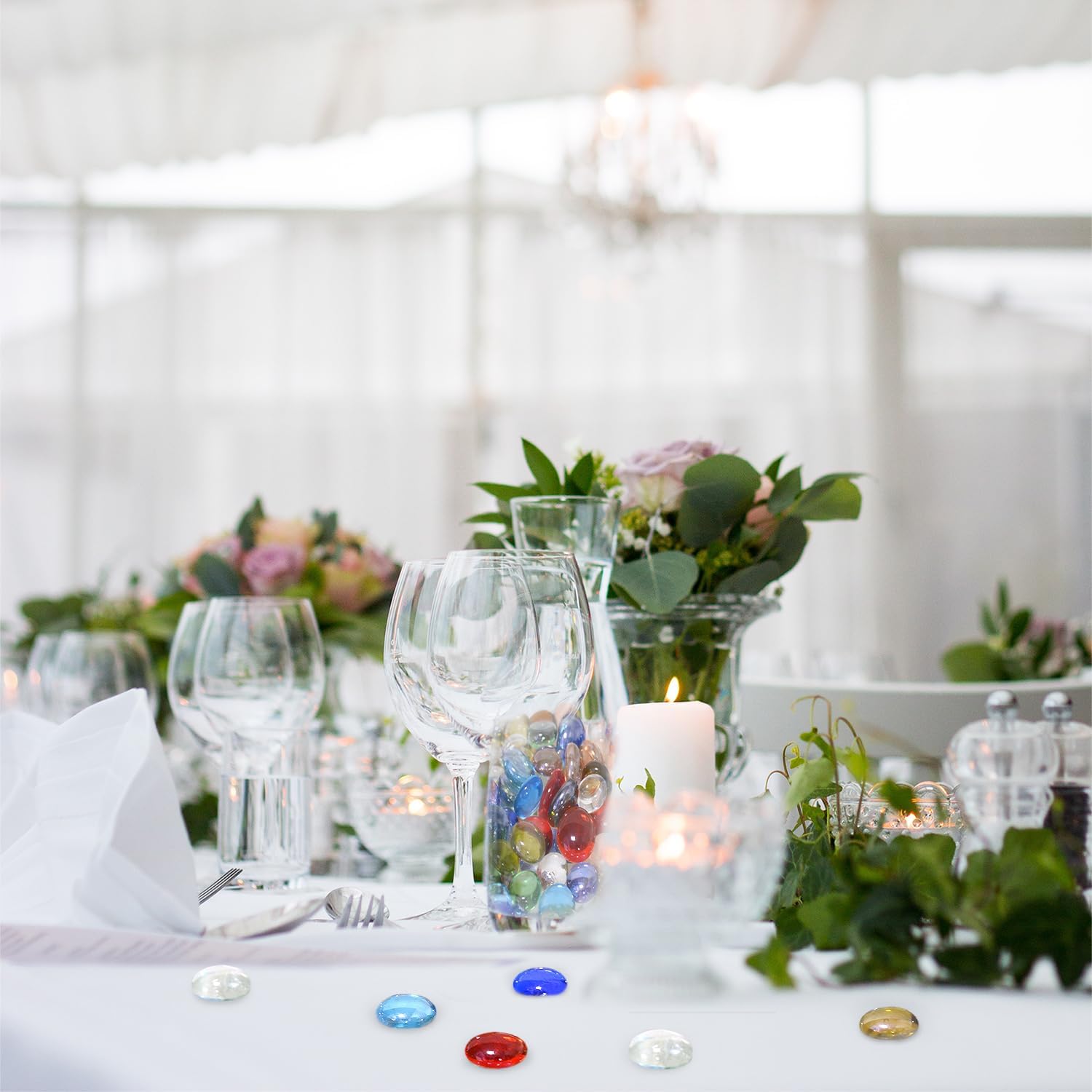 - * The flat glass beads have wide applications, they can be used as fish tank decoration, vase filler, props, table scatter, craft, home décor, fire drops and more.