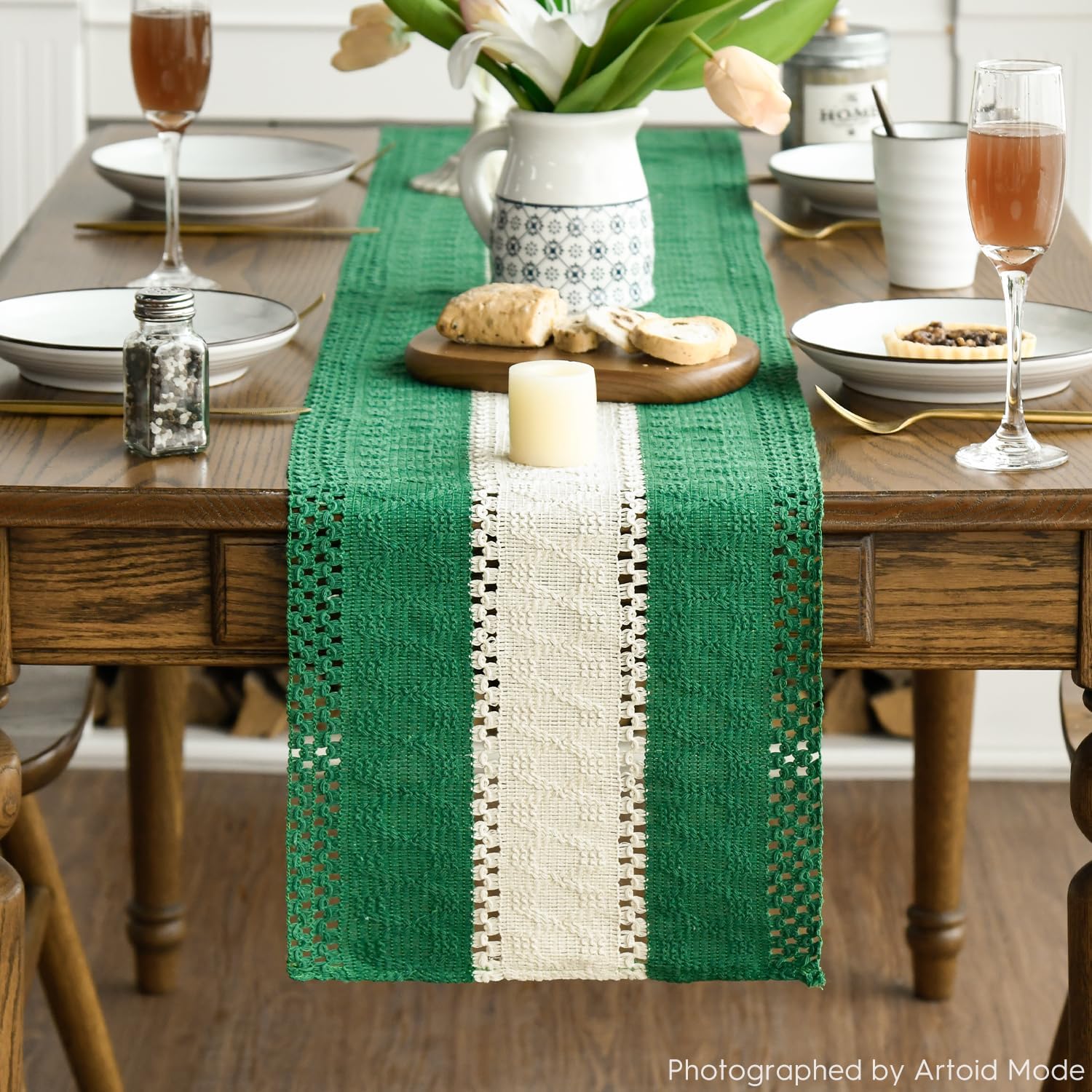 Artoid Mode Dark Green Farmhouse Rustic Table Runner, Seasonal Hollow Kitchen Dining Table Decoration for Home Party Decor 12x36 Inch