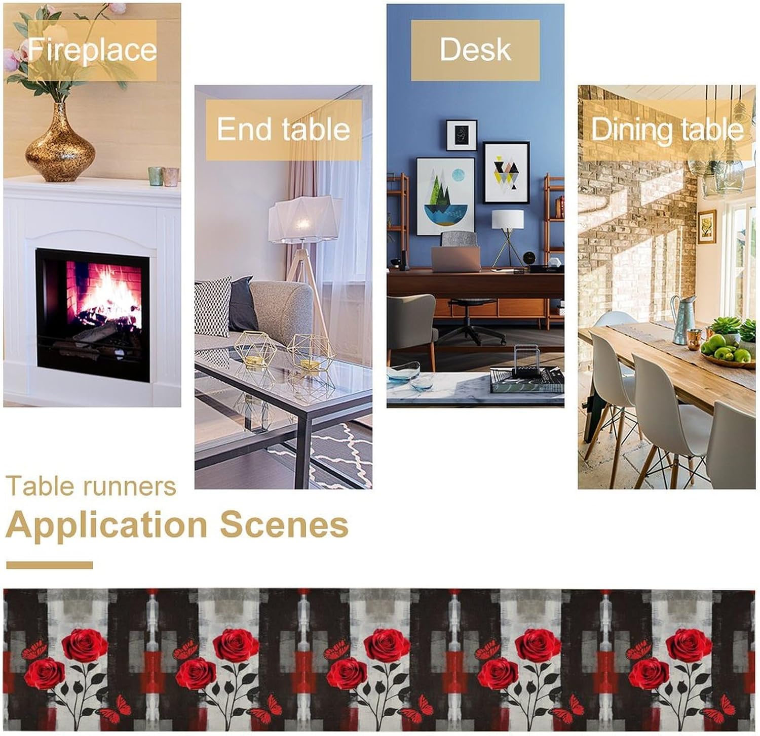 Abstract Art Rose Table Runner, Red Roses Floral Butterfly Black Red Grey Ink Background Pattern Kitchen Dinning Table Runner for Indoor Outdoor Home Wedding Party Holiday, 13x36 Inch