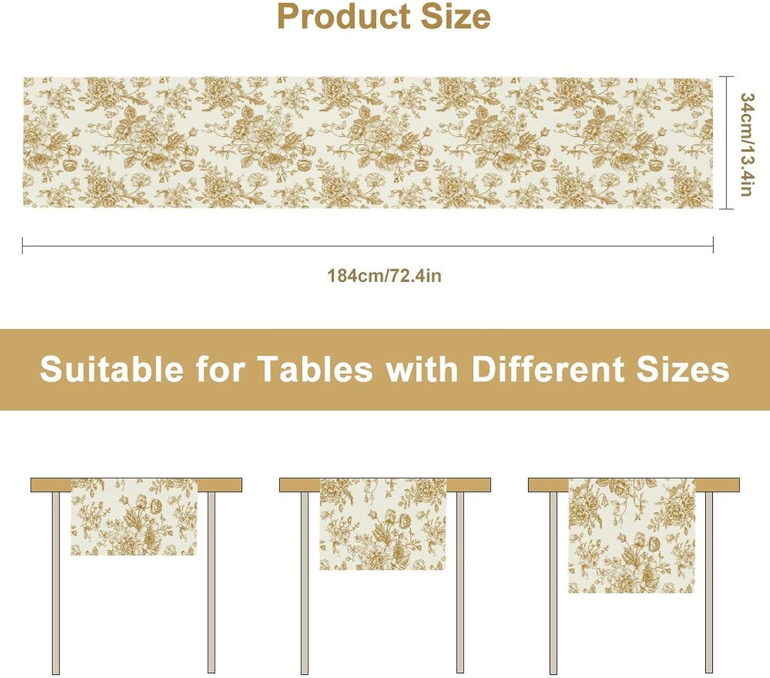 - Package:Each package 1 Table Runner, measures Length: 90 inch, Width: 13 inch.