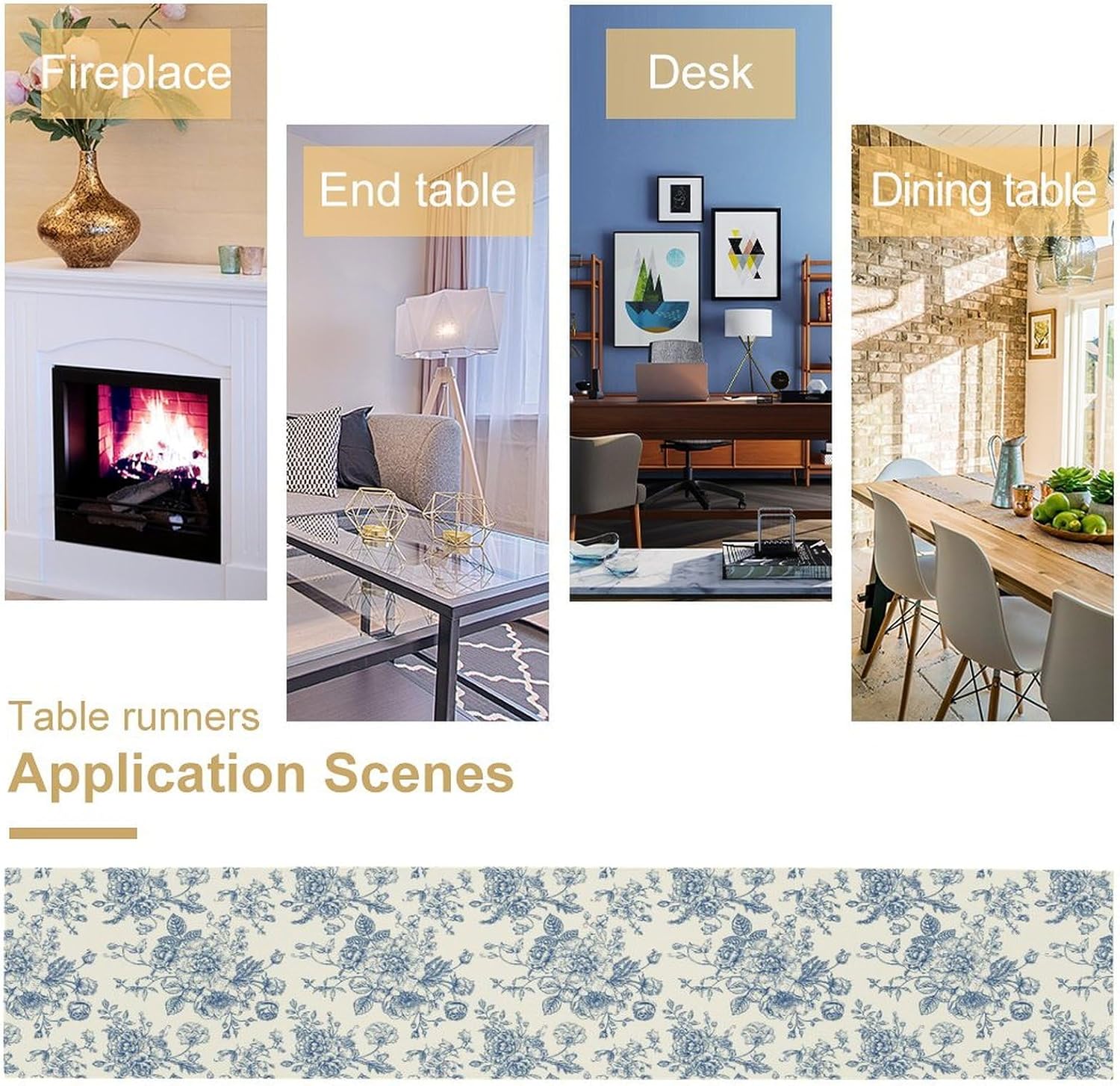 Floral Table Runner, Retro Blue Flower Chinoiserie Sketch Pattern Print Table Runner for Kitchen Dinning Table Runner Decor Home Wedding Party Holiday, 13x60 Inch