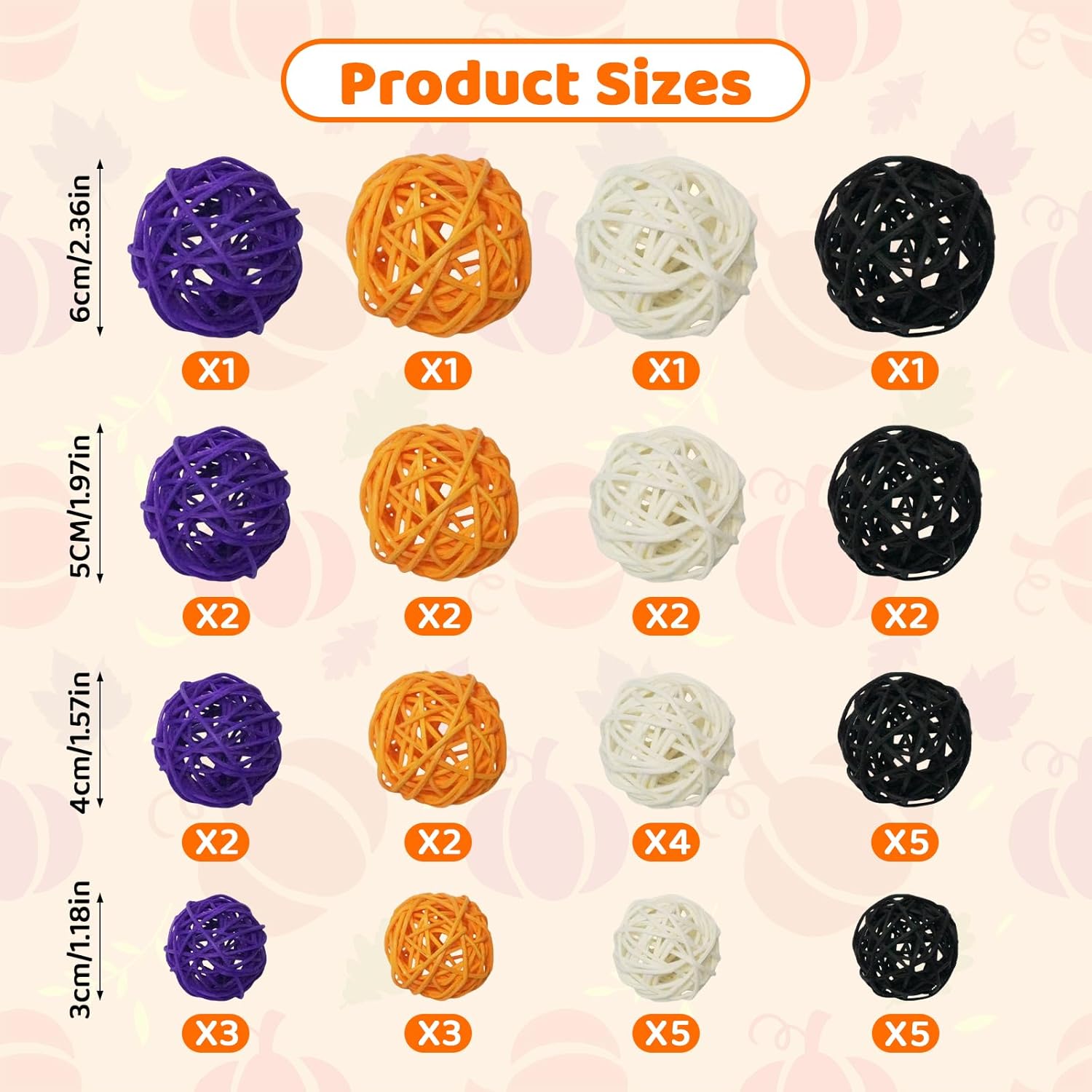 Halloween vase filler decor-36Pack&Halloween Thanksgiving Day Rattan Balls Decorative,&Vase Filler Wicker Ball for Halloween&decorative balls for bowls&bowl fillerTable Hanging Decor DIY Crafts