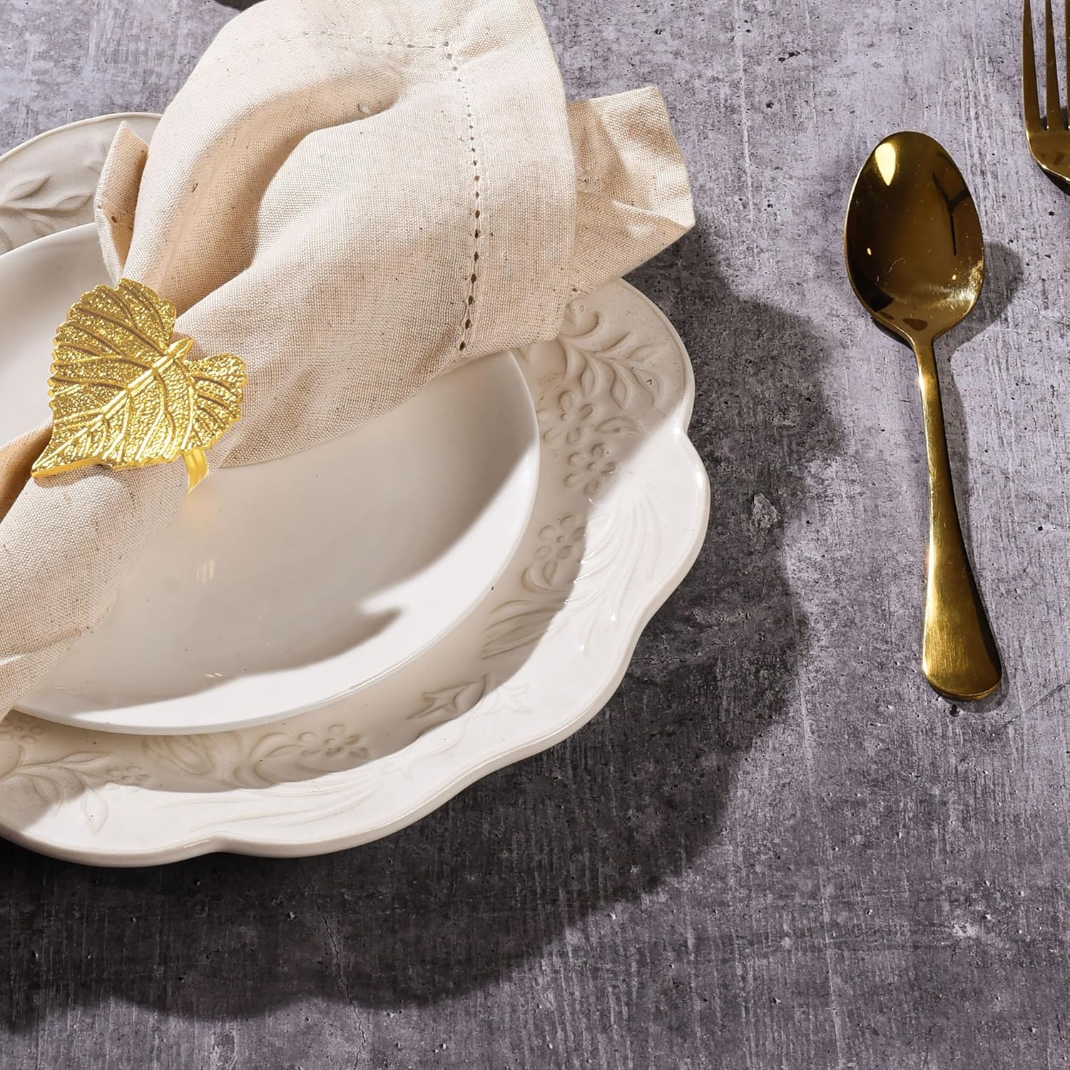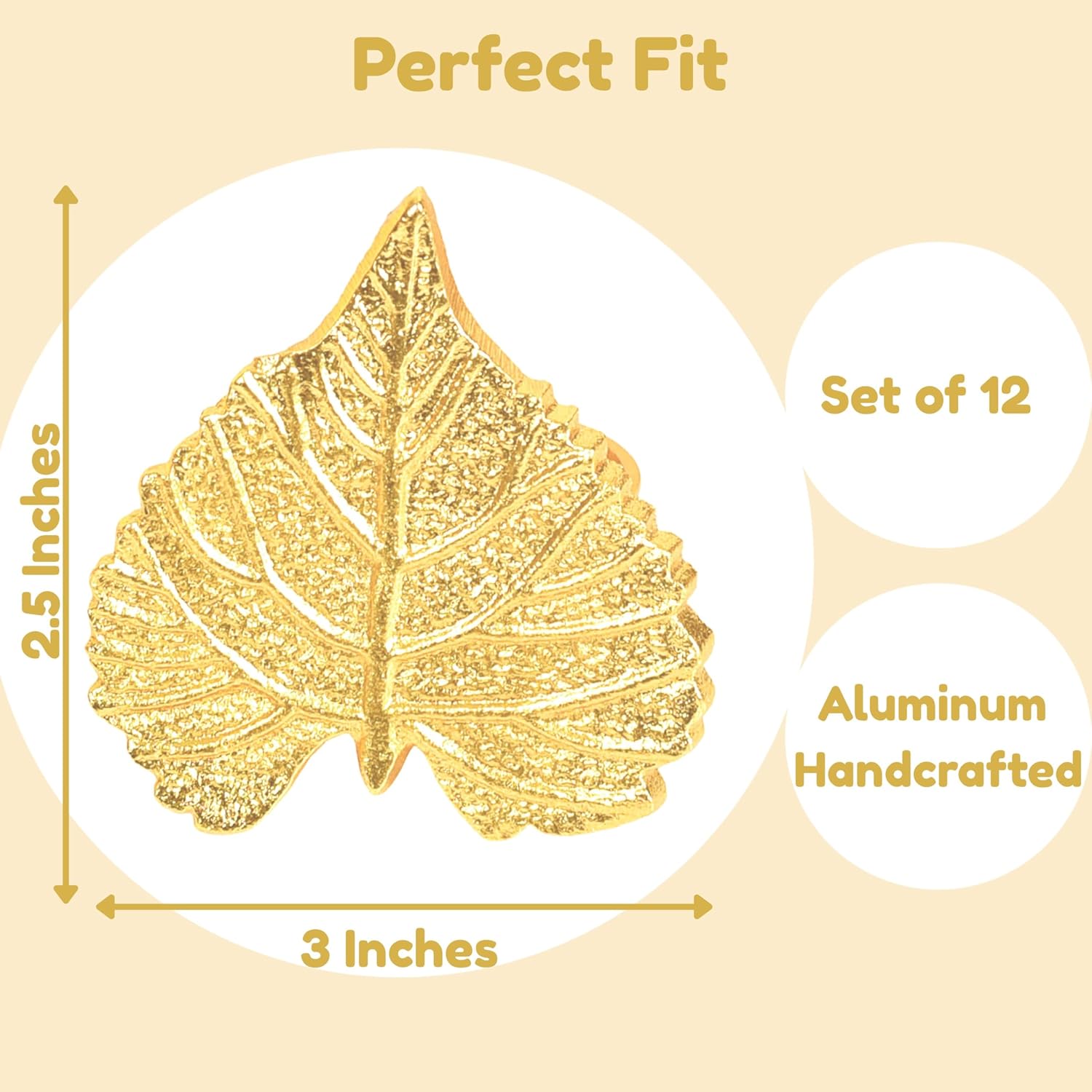 Elegant Handcrafted Leaf Napkin Rings - Set of 12 Premium Aluminum Holders for Dinner Parties, Weddings, Special Occasions & Everyday Dining (Gold) - CLEENTABLE
