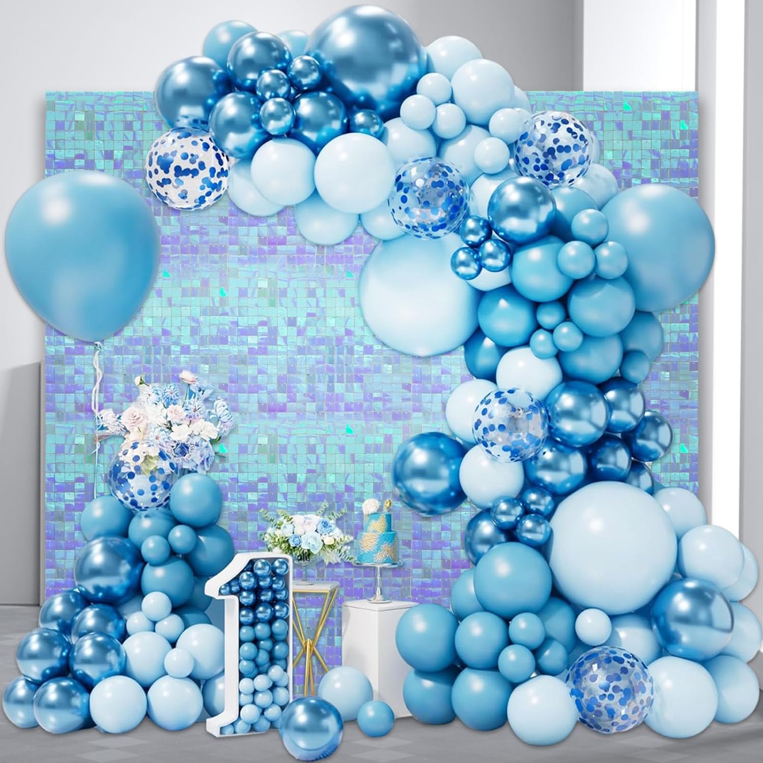 - 【Shimmer Wall Backdrops】The sequins of the colorful ice blue glitter wall panels will move with the wind and sparkle when the light hits them. You can match it with any balloon, wall, outdoor or indoor backdrop to a fantastic shiny photo backdrop, creating a nice shiny atmosphere for your party.