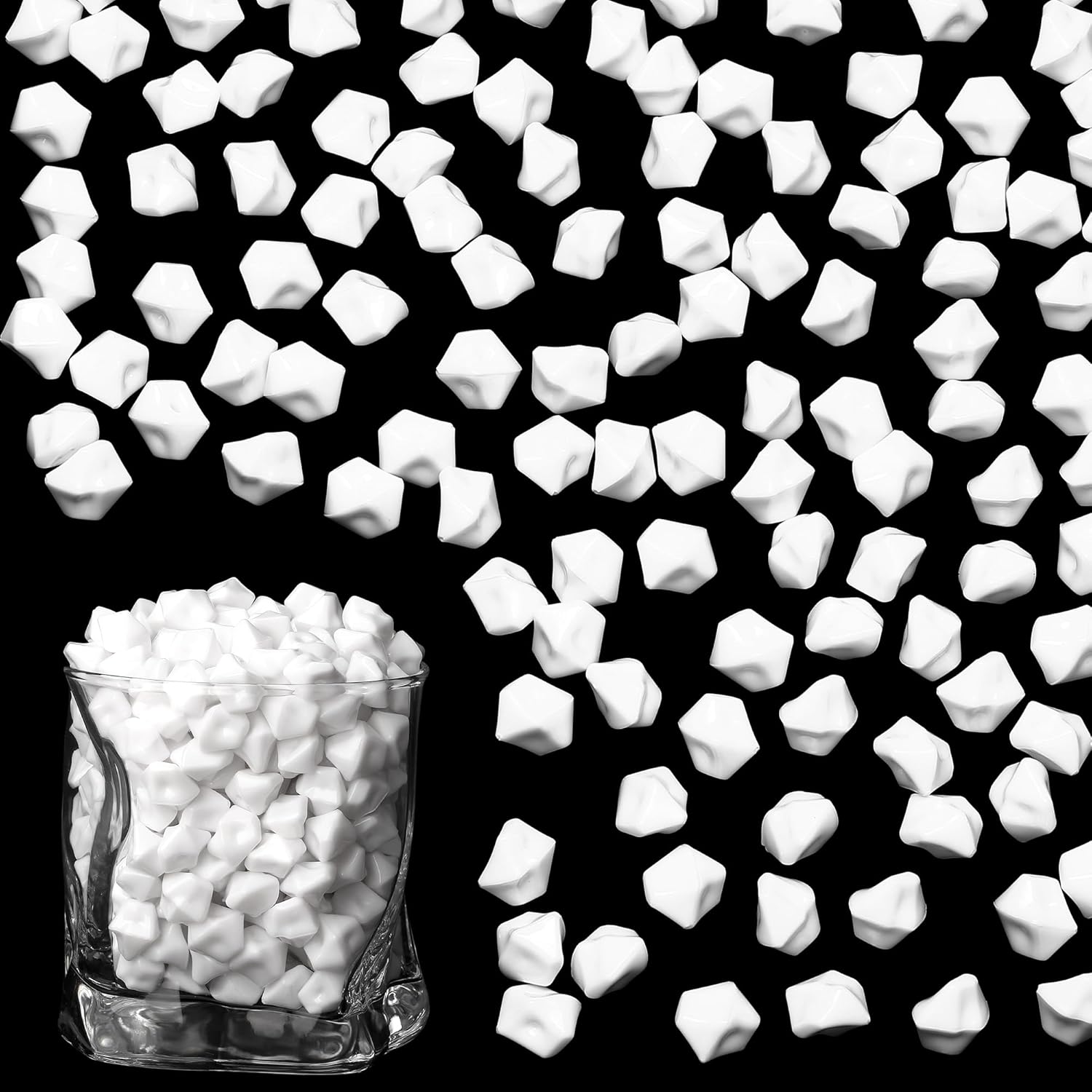 - White Acrylic Ice Cubes – Each box includes 500 white fake ice cubes, approx 11–14mm irregular acrylic gems. White vase fillers are ideal for centerpieces, wedding décor, table scatter, and party styling. Their bright hue adds a clean, sophisticated touch to any event or home décor